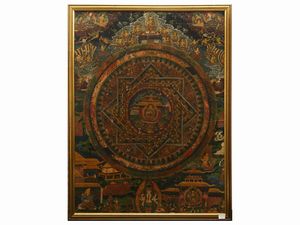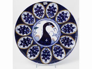 diam cm 36,5 riserva centrale di forma rotonda raffigurante un pavone dipinto nei toni del blu e dell'arancio, [..]