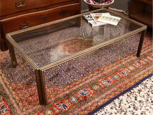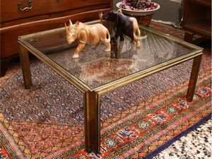 Tavolino basso da caffè in vetro e alluminio cromato bicolore
