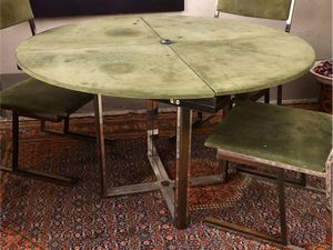 h cm da 69 a cm 73,5, piano diam cm 120, cm 120x120 Italia, Anni Settanta piano circolare rivestito in pelle [..]
