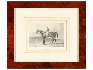 foglio cm 13x17, foglio cm 41x31,5 XIX secolo Edward Hacker (1813-1905) Orlando Winner of the Derby 1844, litografia, [..]
