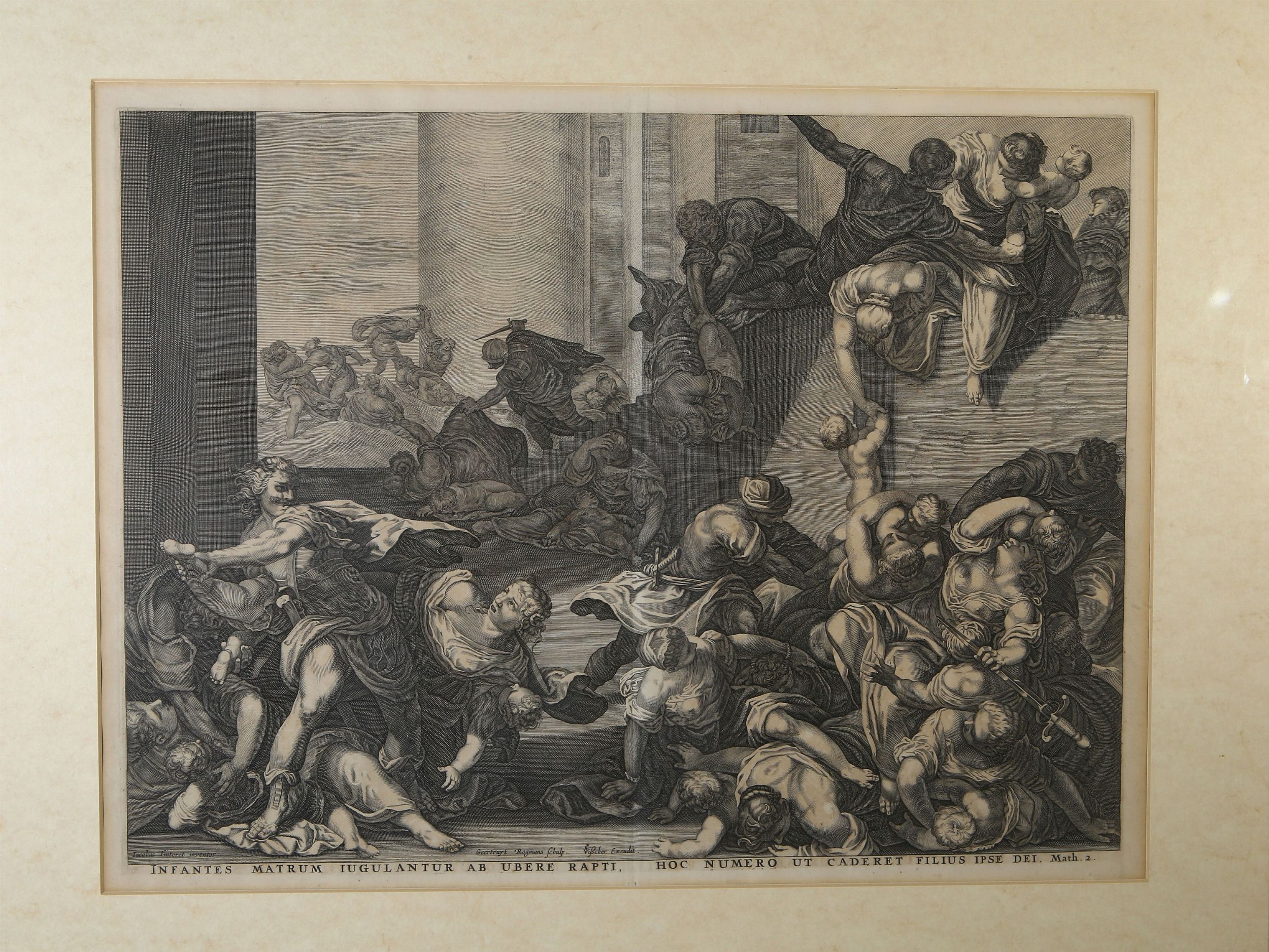 XVI/XVII secolo Marco Dente da Ravenna (1486/1500-1527), Trionfo di Galatea, incisione, in cornice, alcuni difetti; Infantes matrum iugulantur ab ubere rapti, XVII secolo, incisione, reca monogramma inciso R, reca monogramma ad inchiostro V, in cornice, alcuni difetti