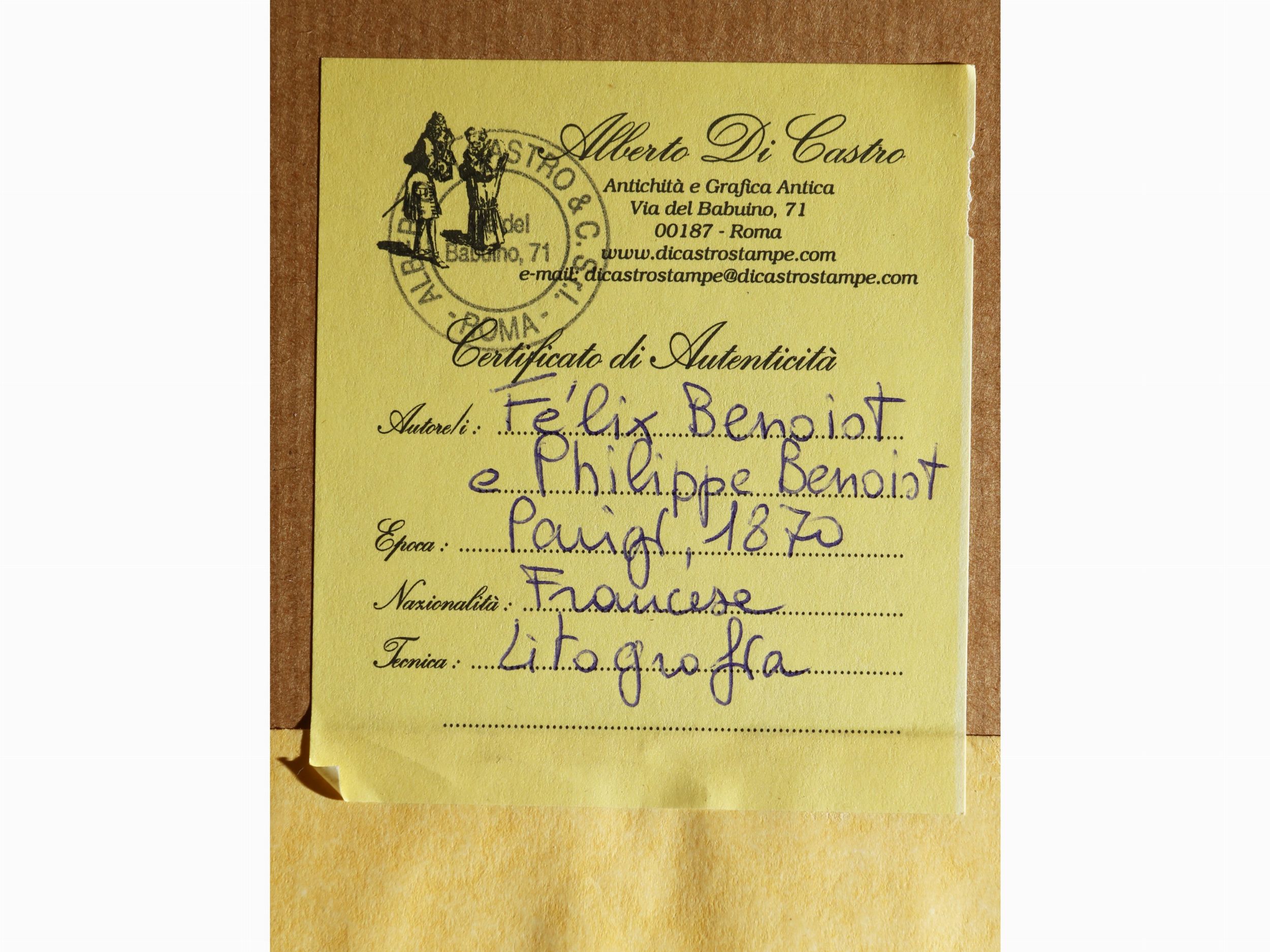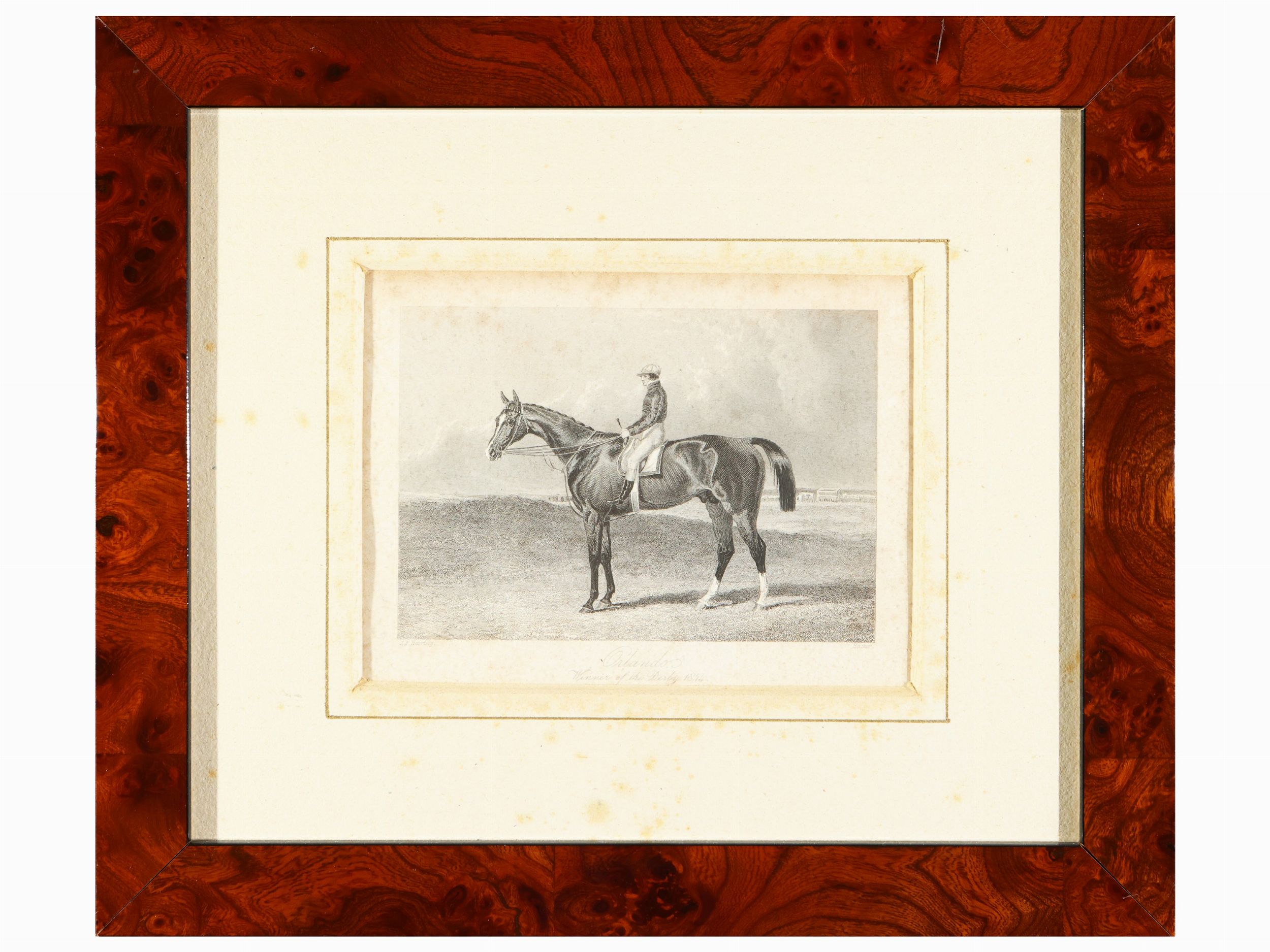 XIX secolo Edward Hacker (1813-1905) Orlando Winner of the Derby 1844, litografia, in cornice, reca ingiallimento del foglio e tracce di foxing; Benoist Félix e Philippe (XIX secolo), Rome dans sa gradeur, Via del Corso e Palazzo Doria, litogrfia, in cornice, reca tracce di foxing