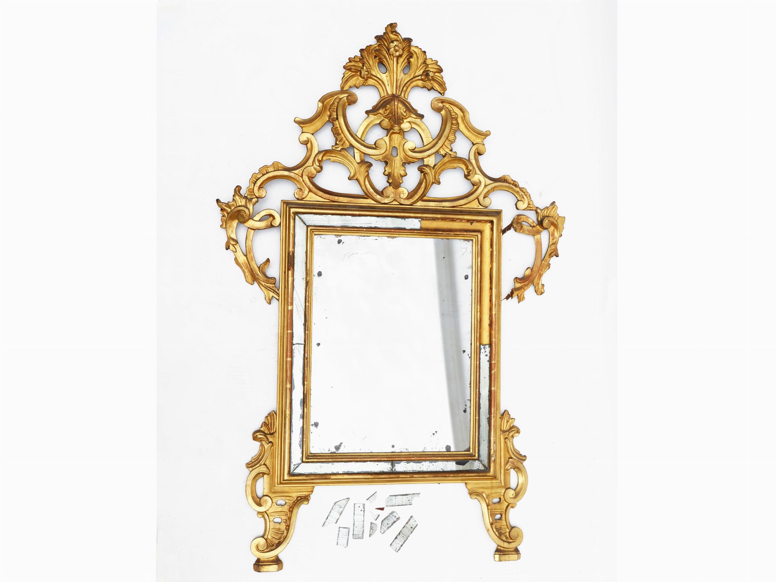 XIX/XX secolo alta cimasa traforata, difetti e mancanze allo specchio