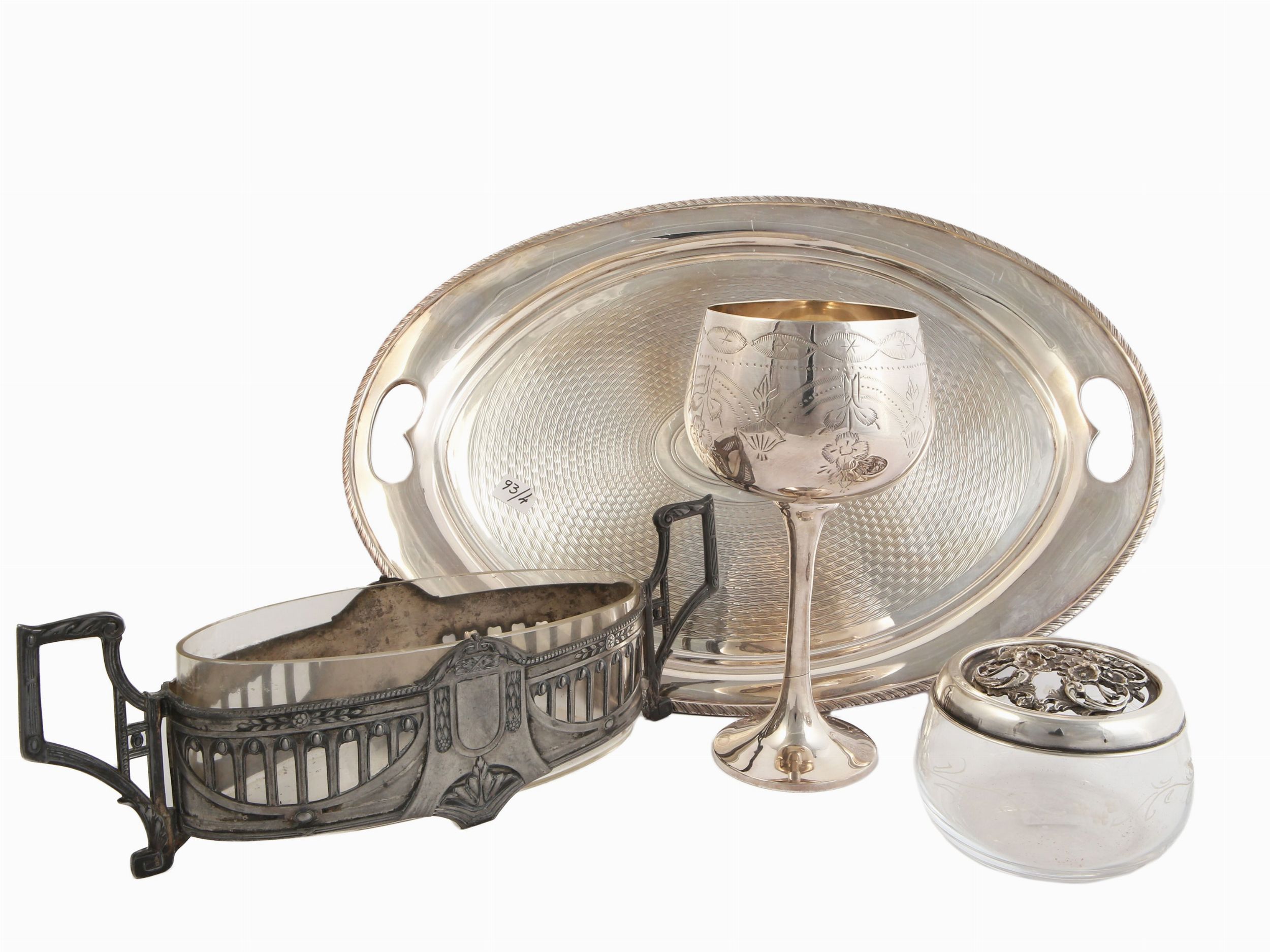 Lotto di accessori per la tavola in metallo argentato