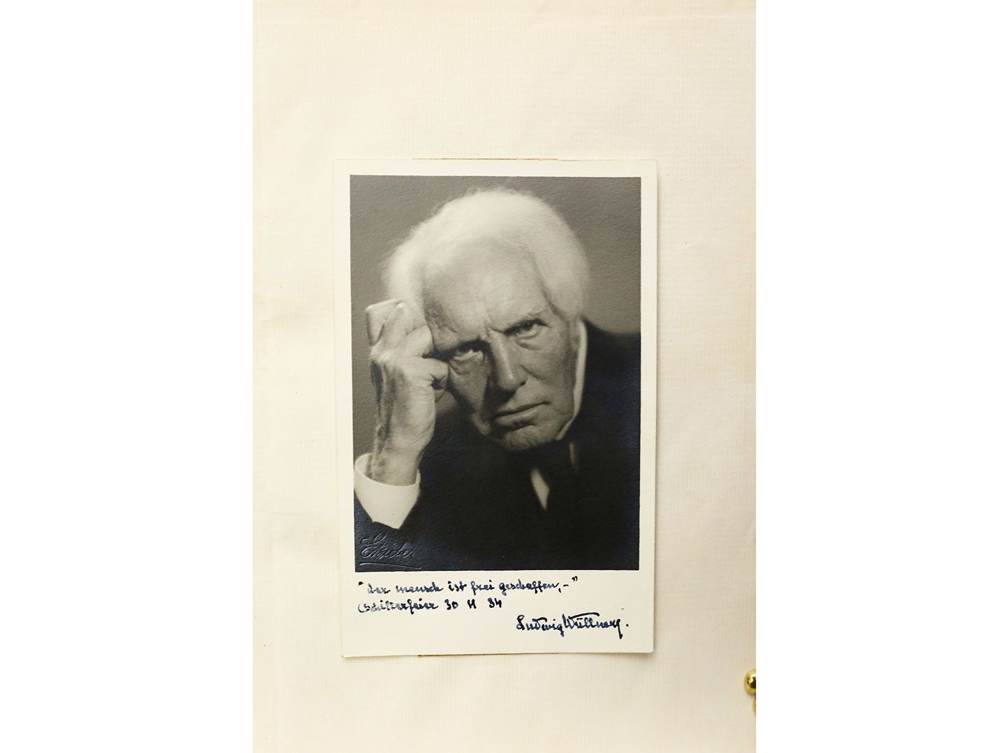 Leipzig: Erich Weibezahl Verlag, 1931, XXXII, 252 p., tav. f.t., 1 litografia di Emil Orlik al frontespizio ...Mit vierzehn Beiträgen zeitgenössischer Persönlichkeiten. Legatura in mz. pelle con difetti al dorso, alle punte e al morso posteriore. Al risguardo anteriore applicati due biglietti autografi e una fotografia con dedica di Ludwig Wüllner