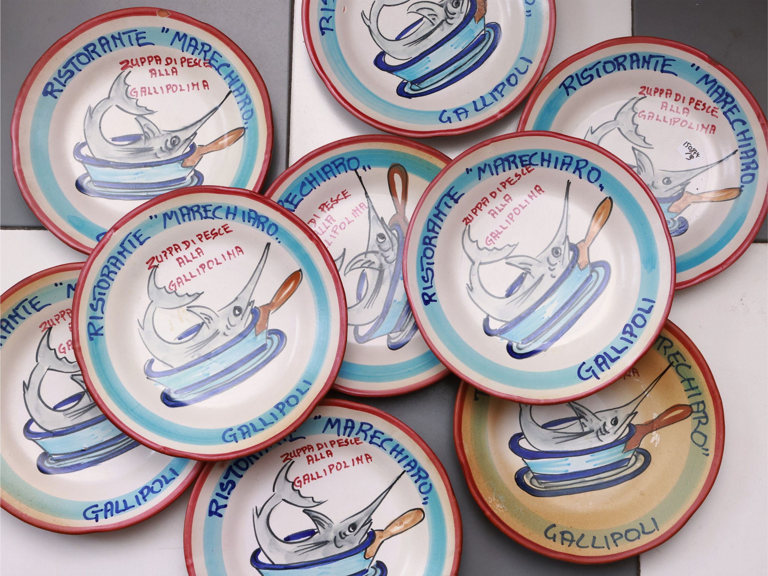 Nove piatti del buonricordo in terracotta invetriata, Vietri