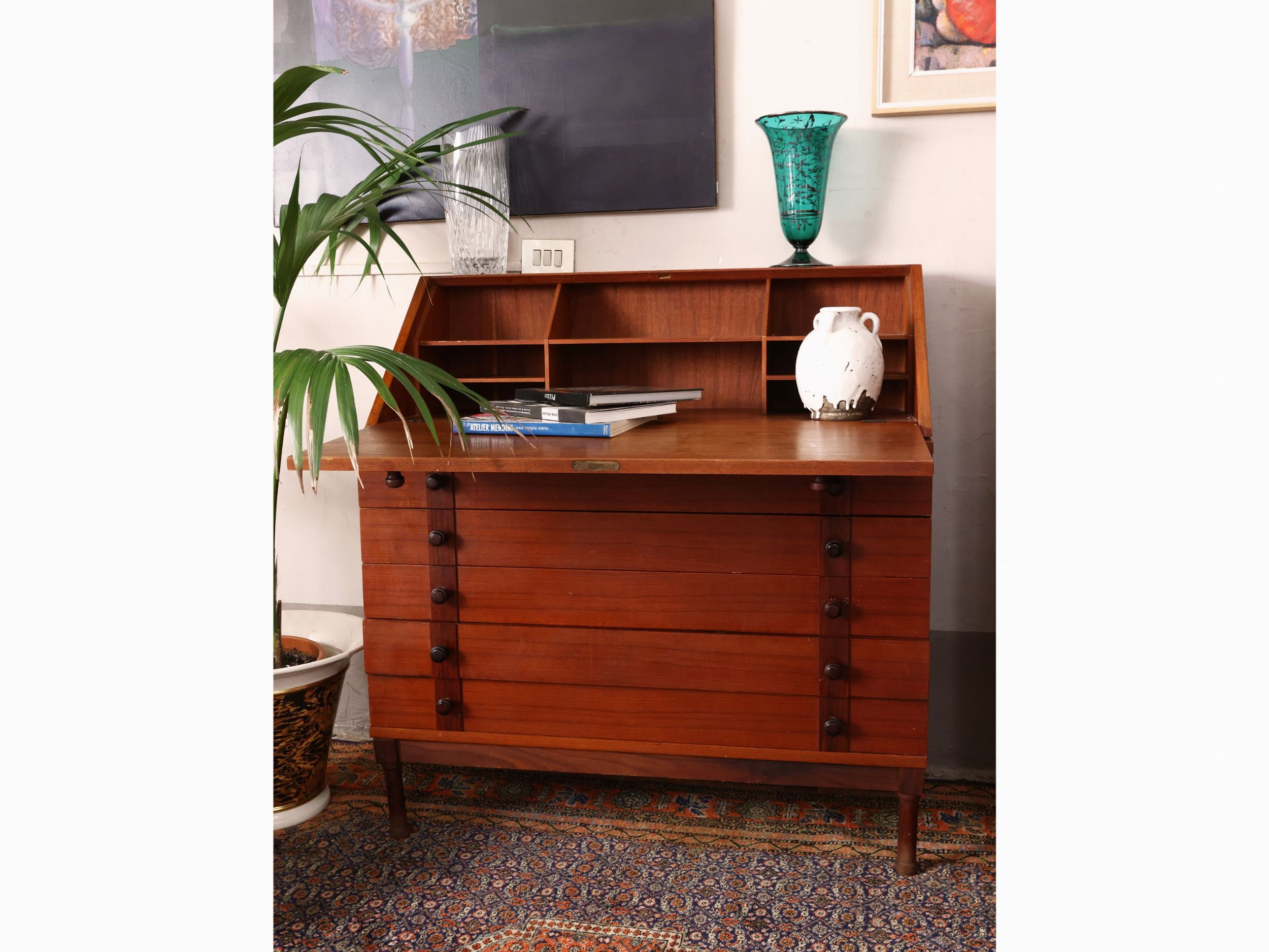 Piccolo cassettone a ribalta in ciliegio di gusto moderno
