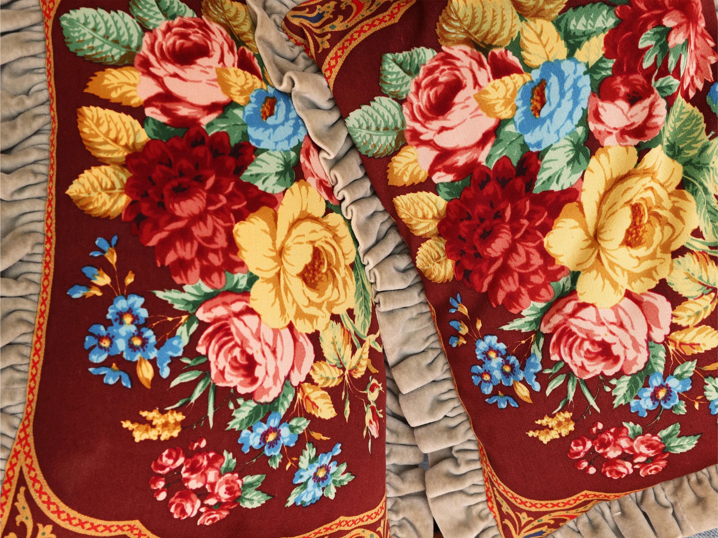 Quattro cuscini double-face in velluto e tessuto floreale