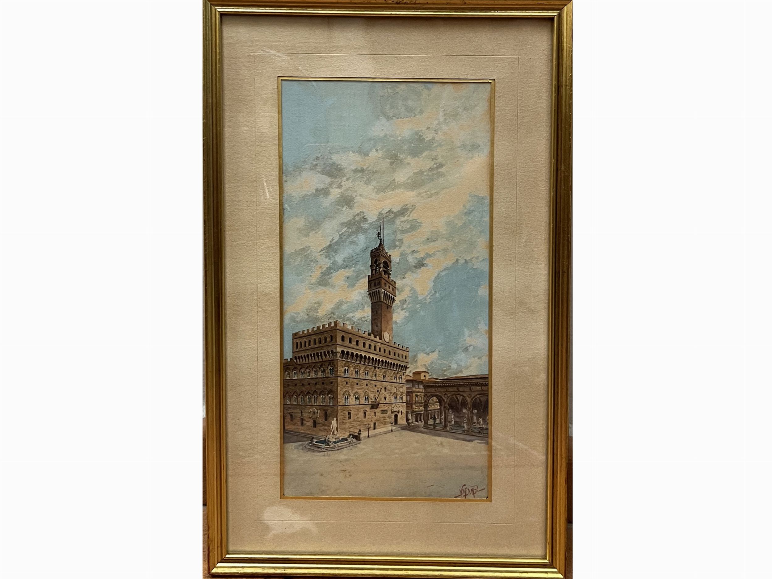 due incisioni da Giuseppe Zocchi e due acquerelli su carta, firmato V. Minardi, in cornice