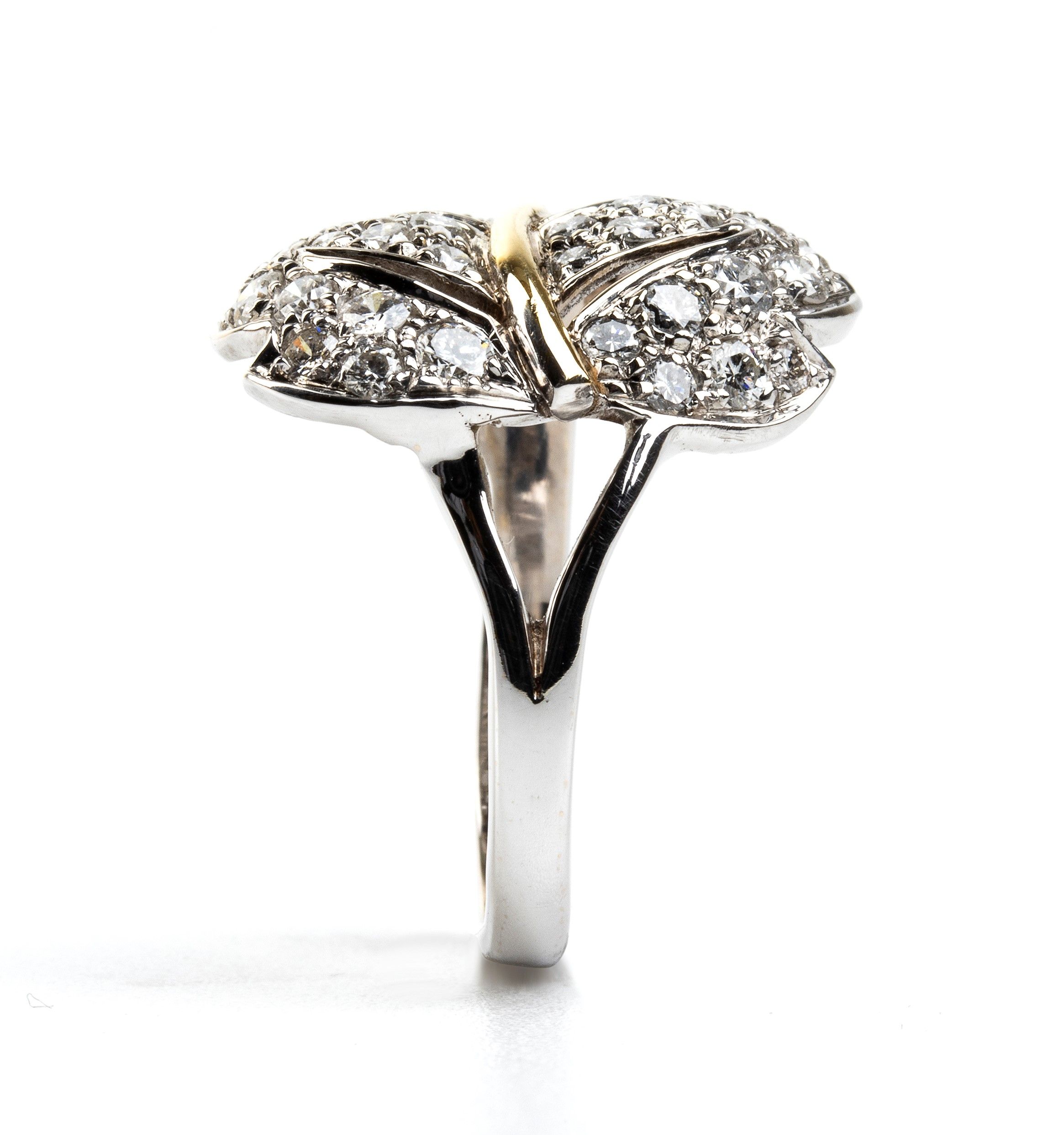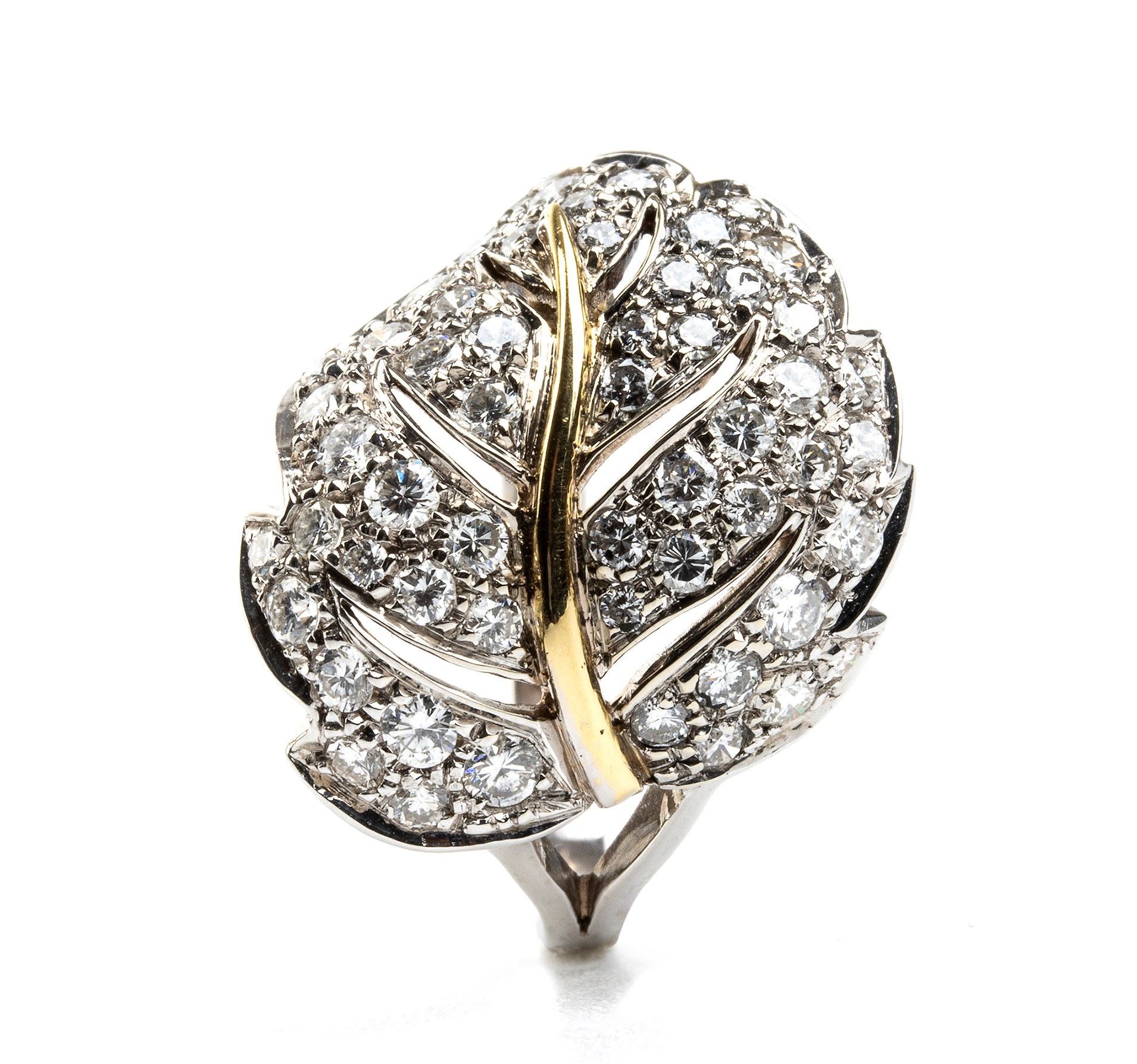 oro bianco ed oro giallo 18k, decorato con diamanti. N. 55 diamanti di forma rotonda taglio brillante 2.00 ct circa, F-G , IF-VVS.