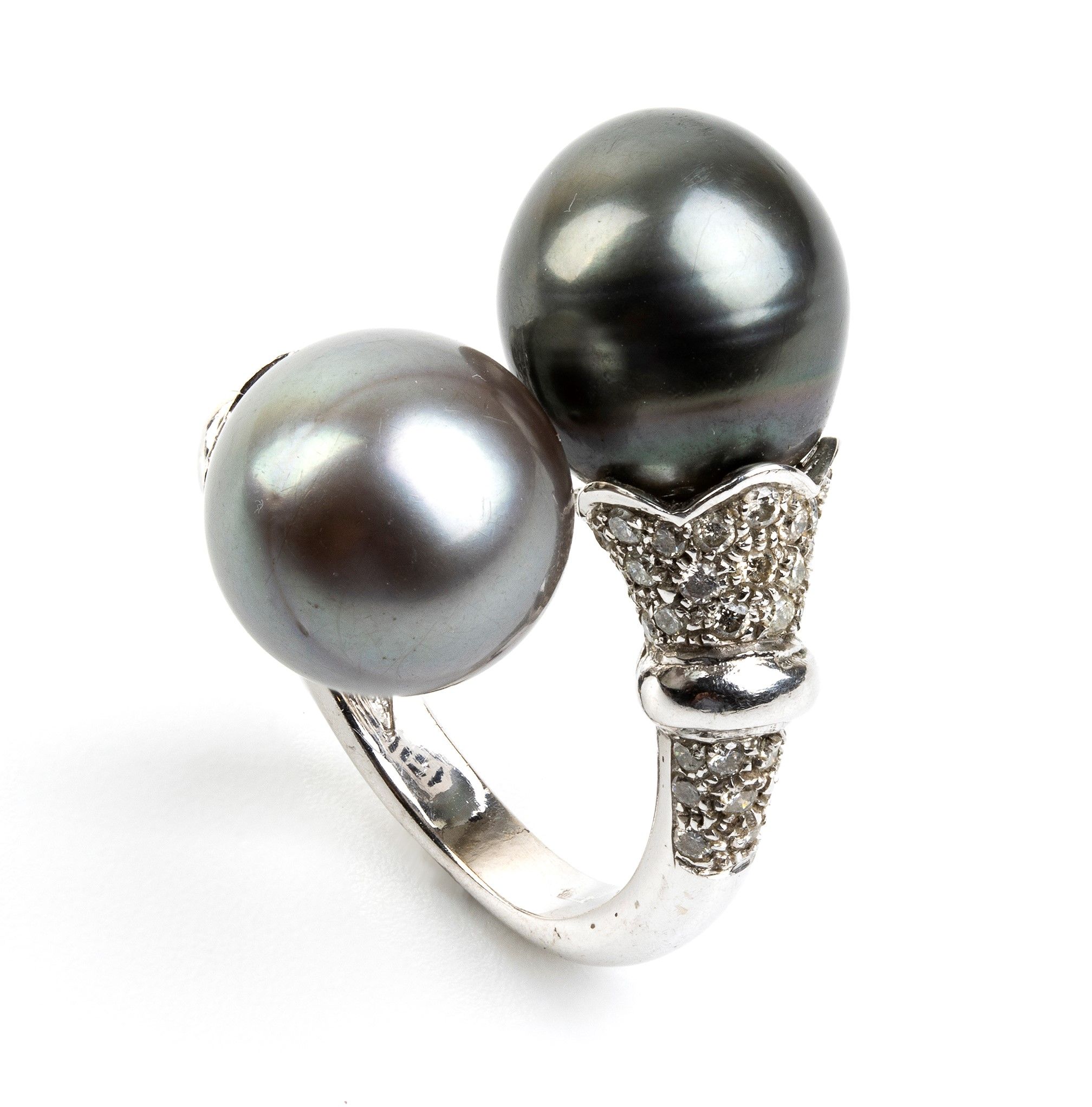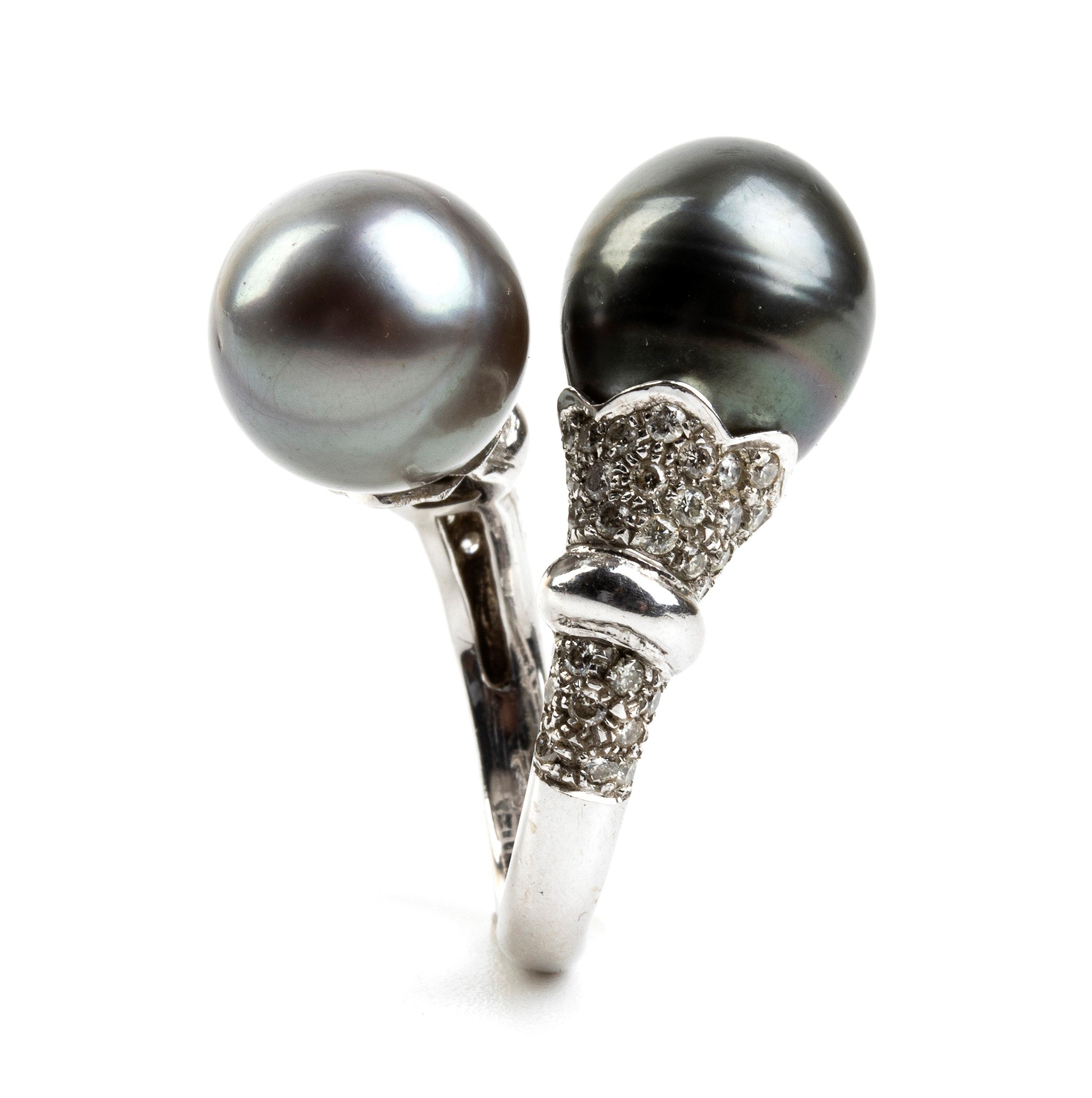 Anello in oro a motivo contrariè in perle Tahiti e diamanti