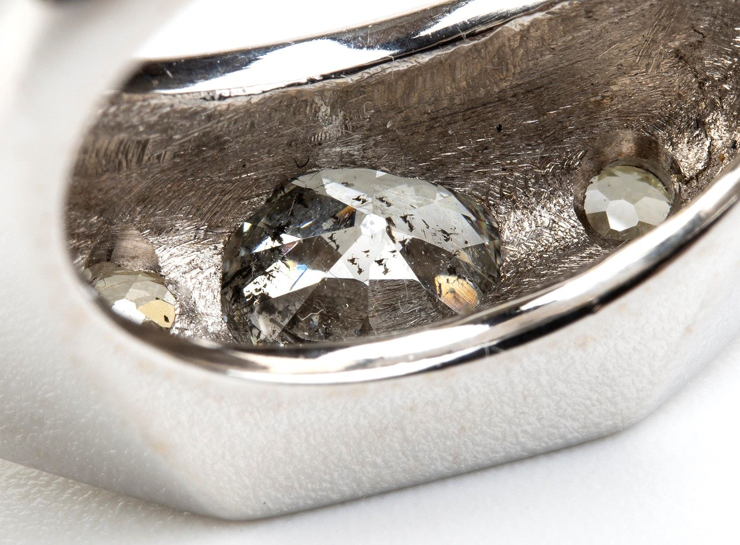 N. 01 diamante di forma rotonda taglio brillante 1.50 ct circa, H-I, P. N. 10 diamanti di forma rotonda taglio brillante e 2 diamanti taglio old mine, 0,60 ct circa.
