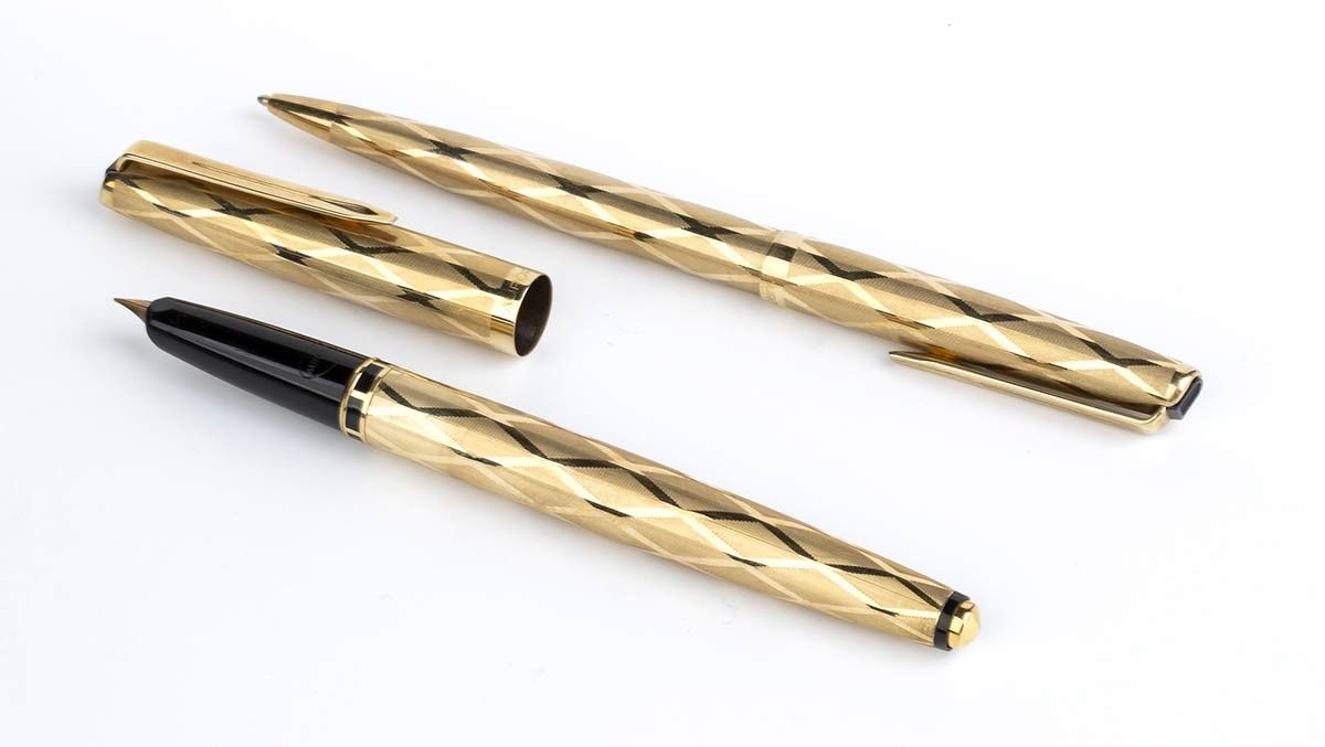 corpo e cappuccio in oro 9k a decori geometrici punzonate 333 - 5 TO. penna stilografica con sistema di caricamento a stantuffo.