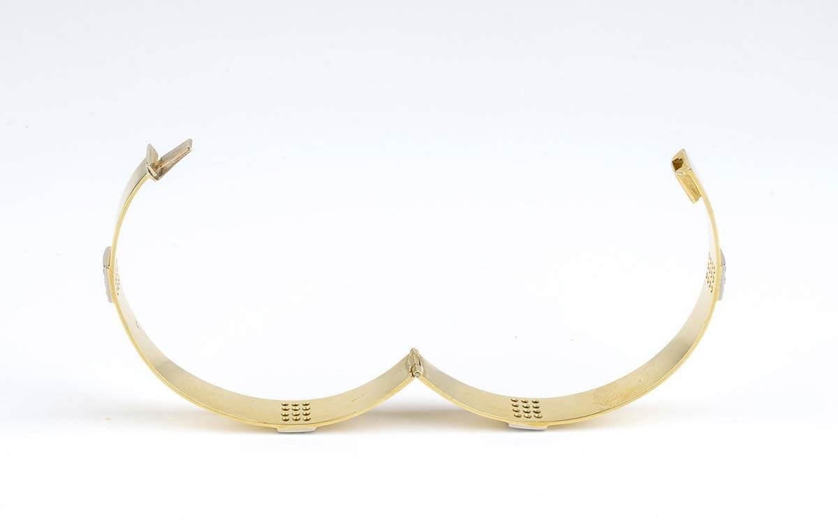 in oro giallo 18k, impreziosito da quarantotto diamanti di forma rotonda taglio brillante 1.50 ct circa, G, VS. Punzonato 750.