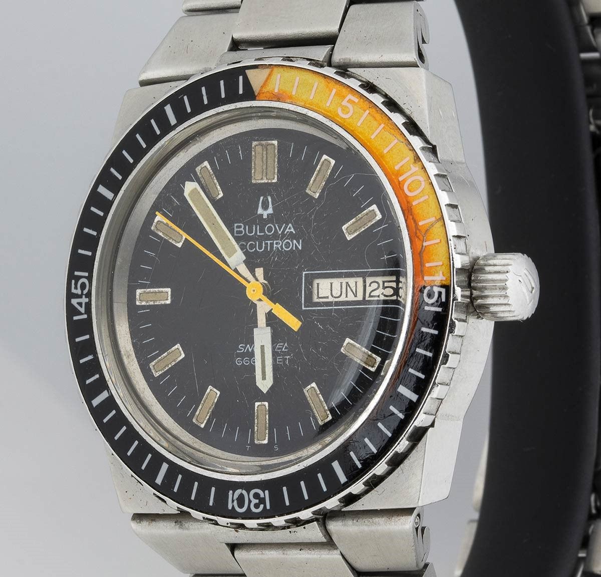 Il primo Bulova Accutron fu commercializzato nel 1960 e rappresentava una rivoluzione nell'industria orologiera per essere il primo orologio elettrico a diapason, il primo ad utilizzare un transistor bipolare ed il primo orologio senza molla né bilanciere.All'epoca l'Accutron (accuracy through electronics), inventato da Max Hetzel (5 marzo 1921 - 2004), rappresentava l'orologio da polso più preciso mai costruito.L'Accutron ha una frequenza di oscillazione di 360 Hertz; alcuni modelli successivi hanno frequenze diverse, ma la caratteristica principale di questo tipo di orologi è di emettere una nota udibile dalla frequenza costante, da qui il nome di orologio sonico. L'altra caratteristica peculiare è la rotazione continua della lancetta dei secondi: mentre in un orologio al quarzo questa scatta ogni secondo e negli orologi meccanici essa sembra girare in continuo, negli orologi a diapason il moto è praticamente circolare uniforme poiché la lancetta si muove alla velocità della ruota indice, cioè 300-320 volte al secondo.Più di 4 milioni di orologi sono stati venduti fino a quando la produzione è stata interrotta nel 1977.