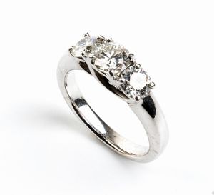 N. 01 diamante di forma rotonda, taglio brillante 0,50 ct circa, F-G, VVS. N. 10 diamanti di forma rotonda, taglio [..]