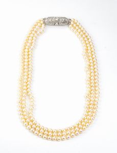 oro bianco 18k, con coppia di perle Tahiti affiancate da pave' di diamanti. Diamanti di forma rotonda, taglio [..]