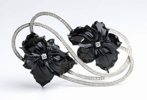 oro bianco 18k, incastonato con tormaline varieta' rubellite di diverse forme e tagli. Firmato GIRONI. [..]