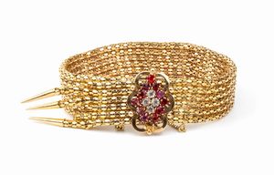 oro giallo, rosa e bianco 18k, modellato come una fascia con pave' di diamanti. N. 111 diamanti di forma rotonda, [..]