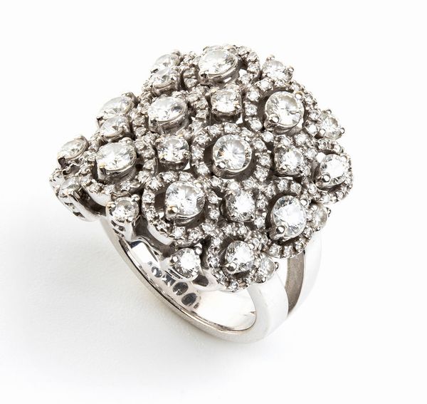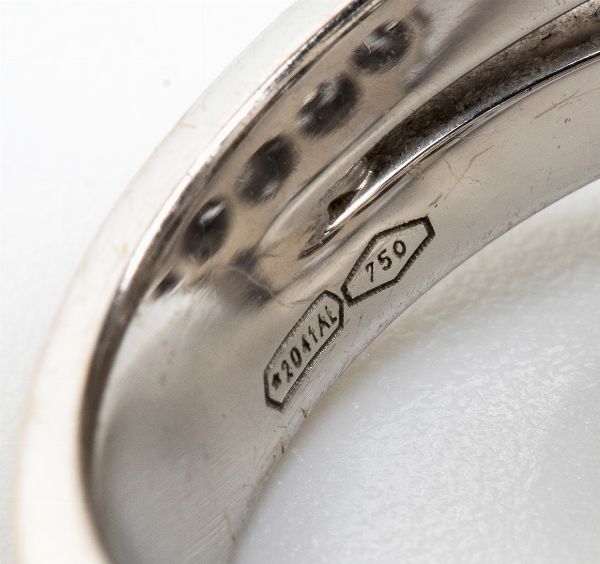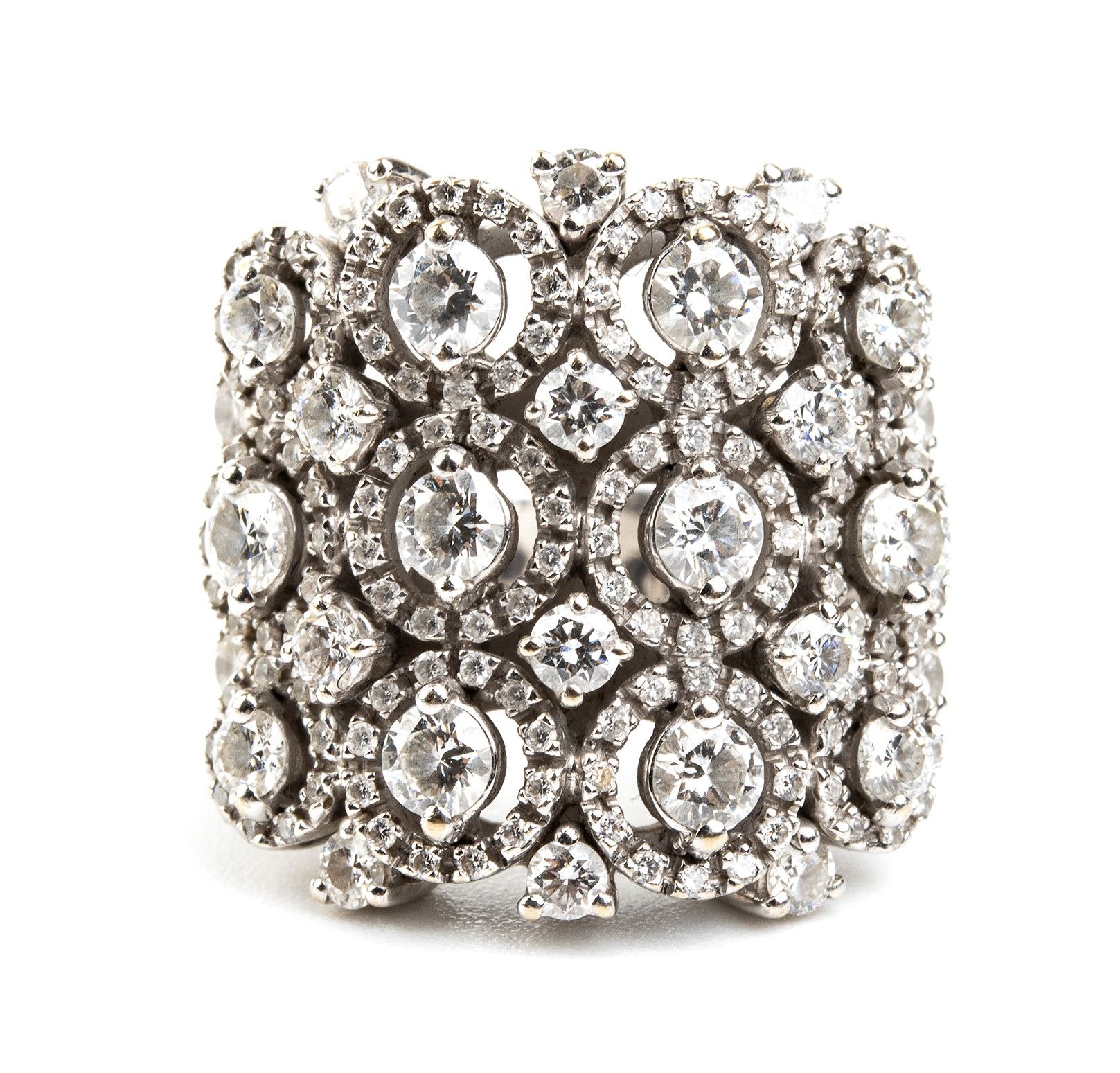 modellato come una fascia in oro bianco 18k, con motivo traforato in diamanti. N. 154 diamanti di forma rotonda taglio brillante 2.80 ct circa, E-F, IF-VVS. Firmato LEO PIZZO. Punzonato 750 - 2041 AL.