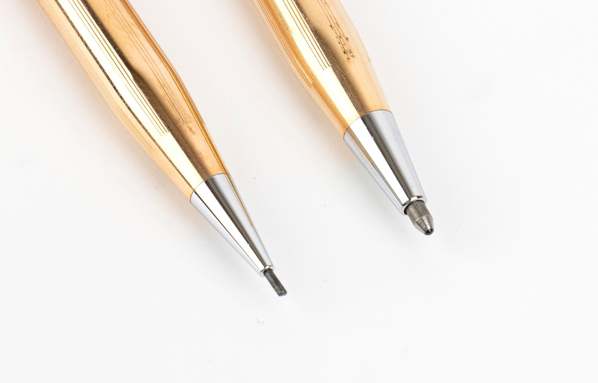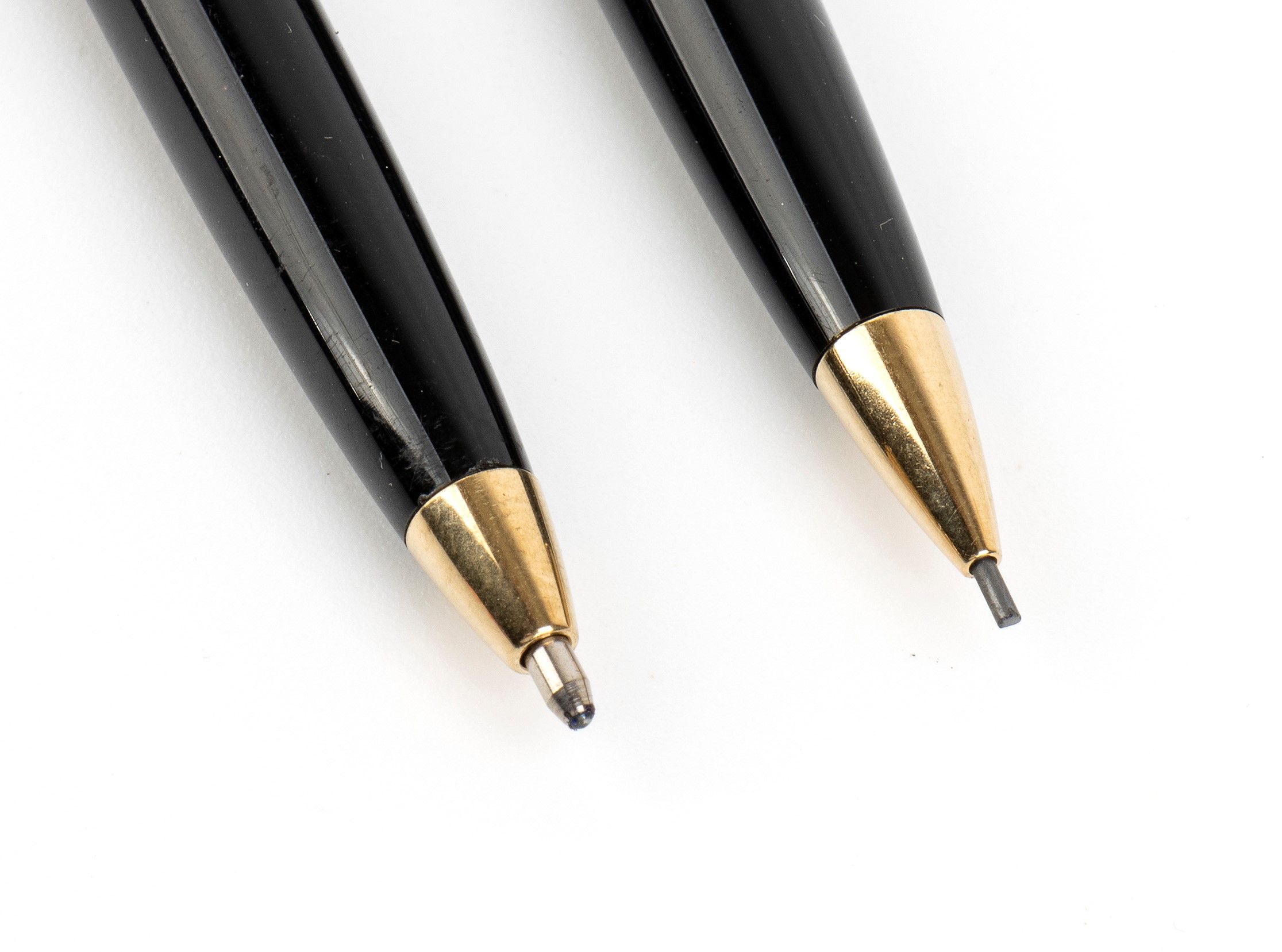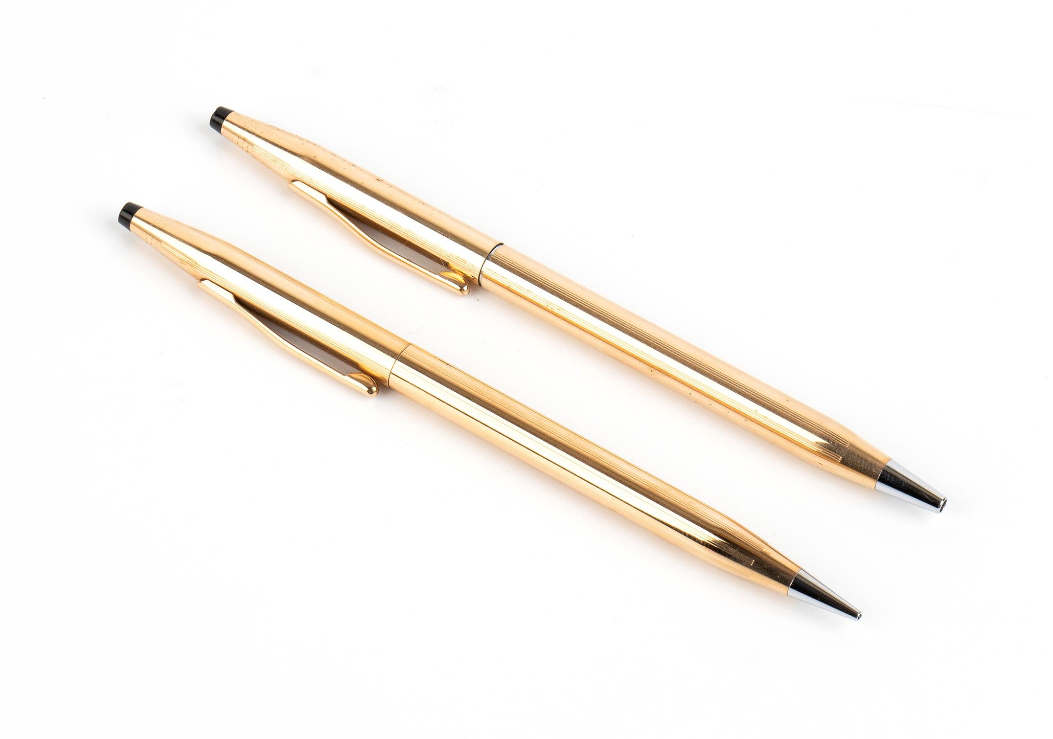 b) una penna a sfera ed un portamine CROSS in custodia originale. Lunghezza 13,4 cm. Peso totale 37,1 gr.