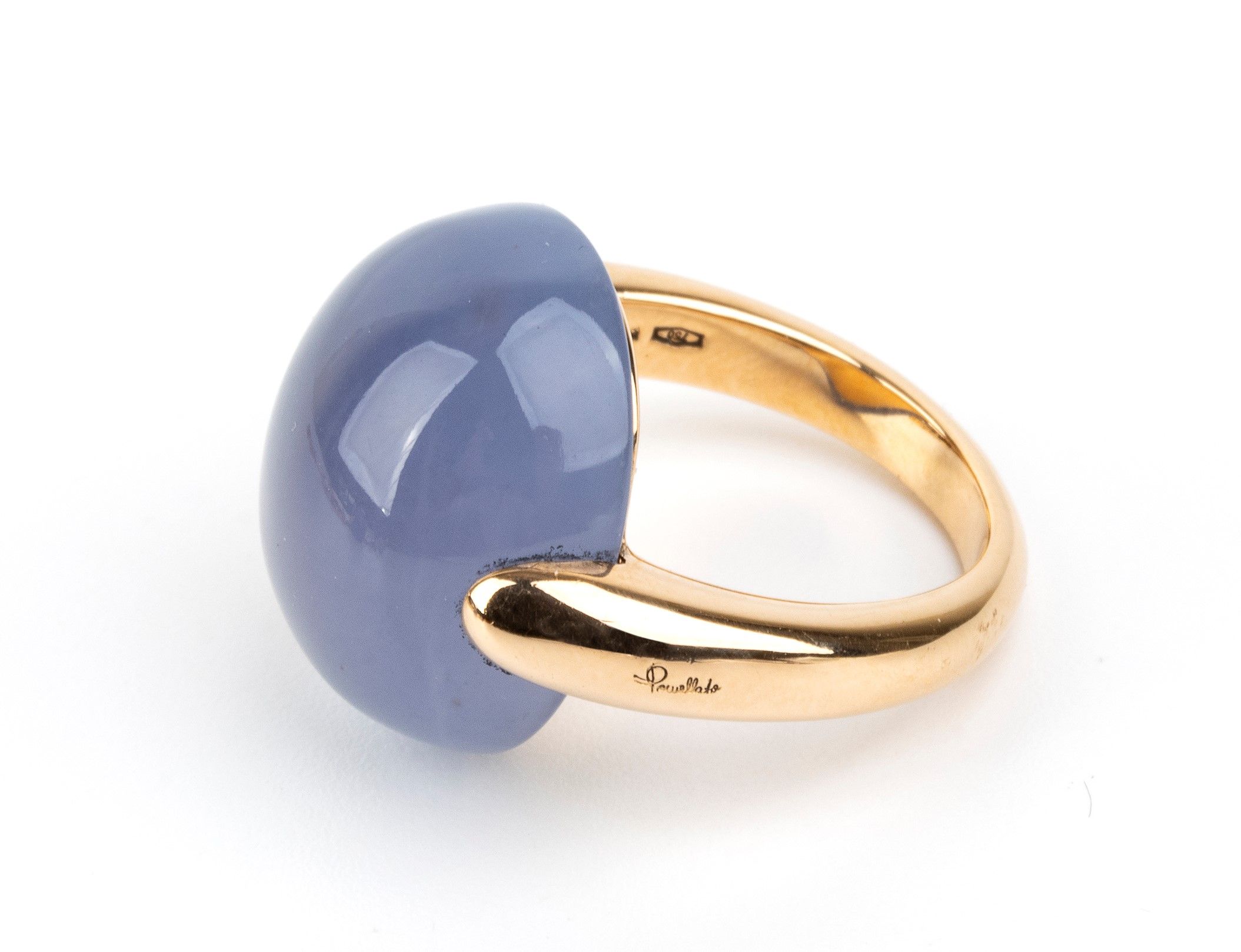 oro giallo 18k, con cabochon di calcedonio. Firmato POMELLATO. Punzonato 750 - 418 MI.