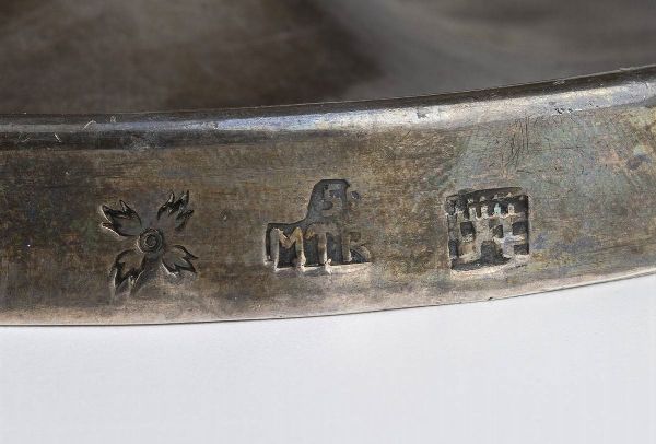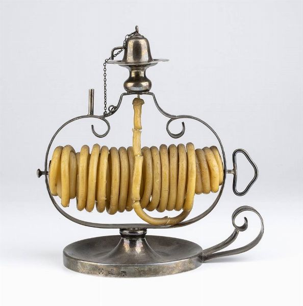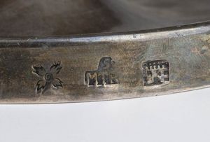 usata per sigillare le lettere con snuffer e stoppino di cera d'api. Argento, punzonata con marchi spagnoli, città di Saragozza: ''5 MTR''.