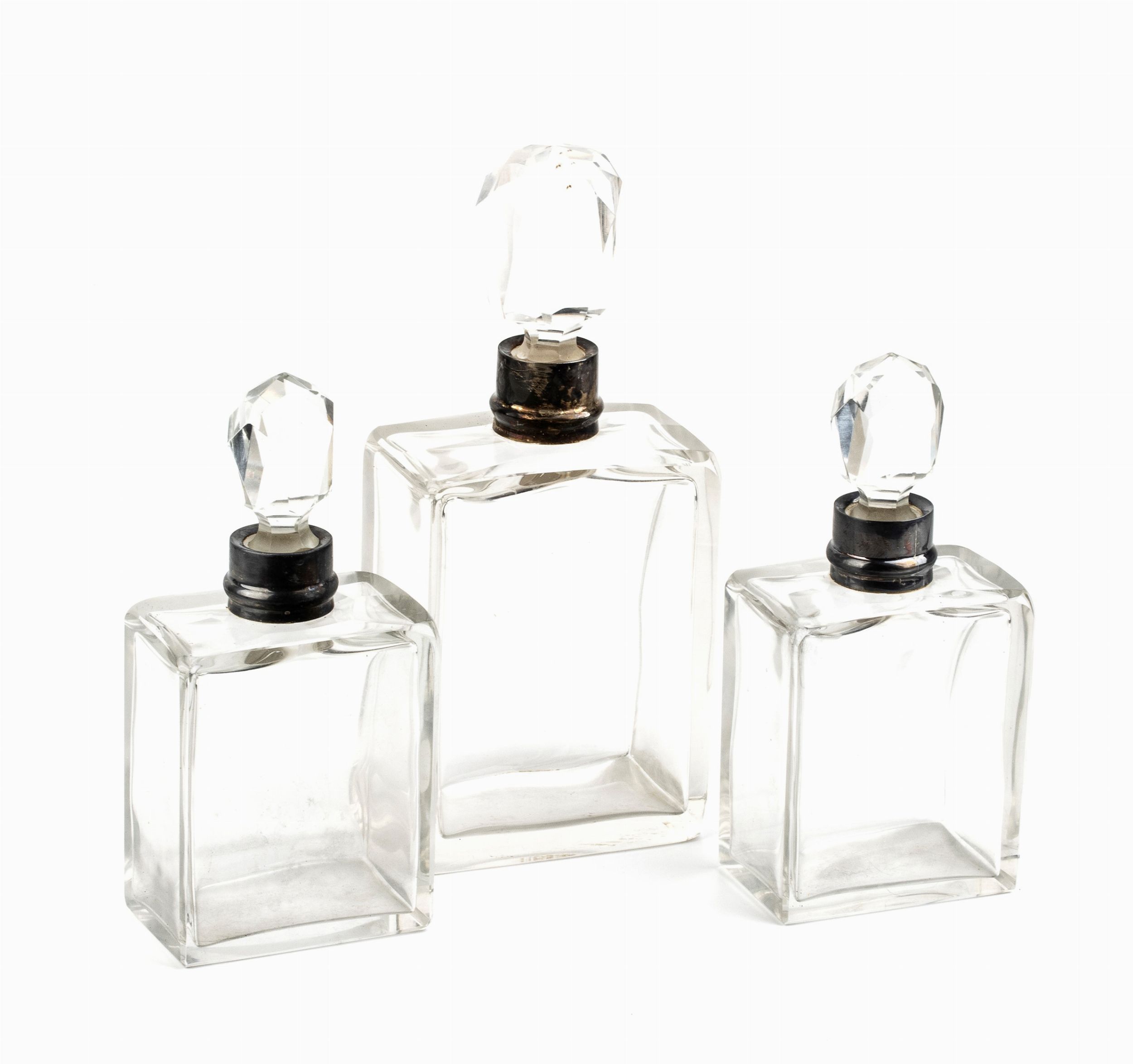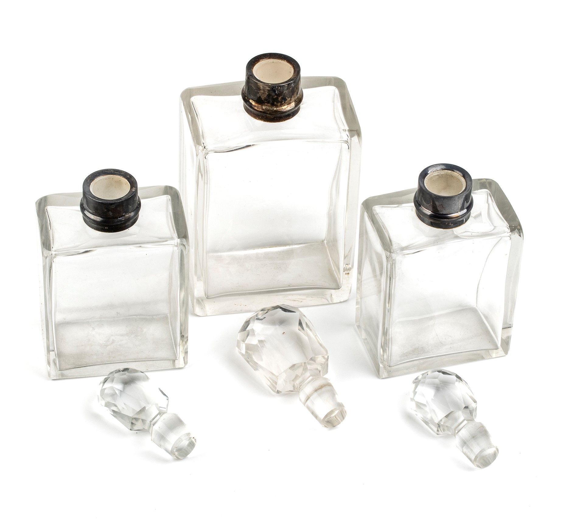 Tre bottiglie bottiglie inglesi in vetro e argento - Birmingham 1923, argentieri [..]