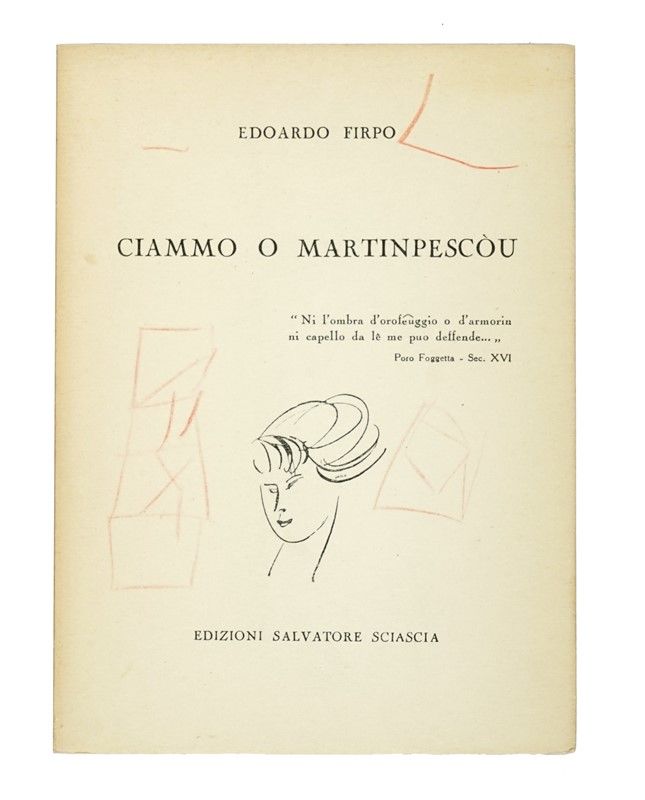 Compongono il lotto: 1) Firpo Edoardo, Ciammo o Martinpescou. 1955. Alcuni disegni a matita rossa sul piatto anteriore e la prima carta. 2) Clemente Vittorio, Tiempe de sole e fiure. 1955. 3) Leonetti Francesco, Arlecchinata. 1955. 4) Crimi Nino, Del corpo e d'un sorriso poesie. 1955. 5) Vivaldi Cesare, Il cuore d'una volta, 1956. 6) Bodini Vittorio, Dopo la luna. 1956. 7) Pardo Michele, Estate d'Agavi.1956. 8) Rizzardi Alfredo, Marine, torri e altre cose. 1956. 9) Tognelli Jole, Due passi nell'anima. 1956. 10) Alù Michele, Mandorli. 1956. 11) Mosca Francesco, Oltre quel muro. 1956. 12) Fancelli Manlio, Antologia. 1957. 13) Comes Salvatore, A un altro me stesso. 1957. 14) Compagnone Luigi, I santi dietro le porte. 1957. SI AGGIUNGE: Galleria rassegna bimestrale di cultura 2-3. Anno IV, Maggio 1954. Caltanissetta: edizioni Salvatore Sciascia, 1954. Conservata la sovraccoperta editoriale impressa (difetti lungo il dorso).