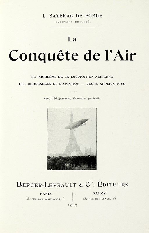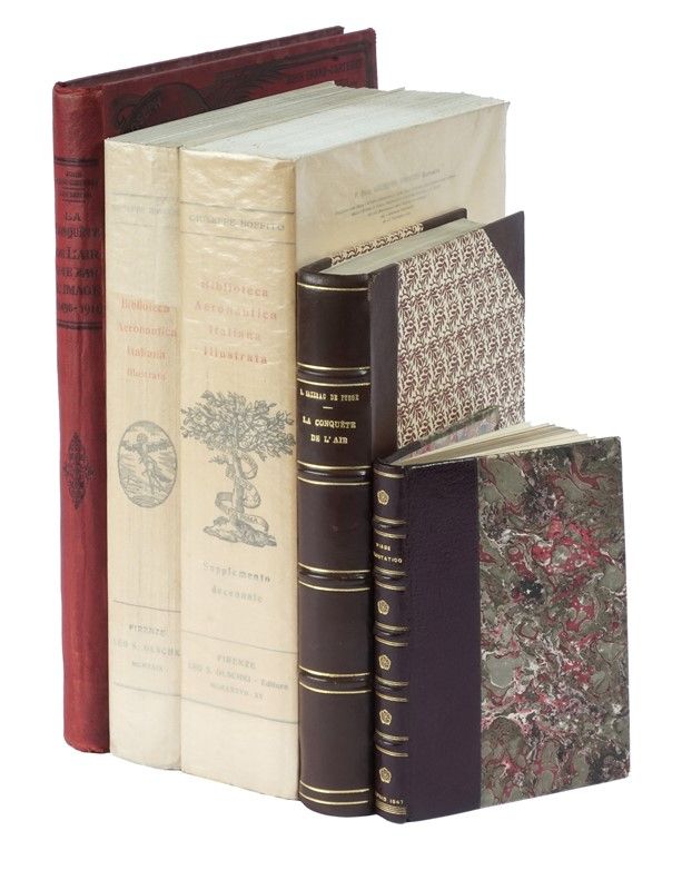 2 volumi in-4° (mm 298x205). Riccamente illustrato all'interno. Perfetto stato conservativo. Brossura editoriale originale. SI AGGIUNGONO: 2) Gerundio y Tirabeque, Viage aerostatico. Madrid, 1847. 3) L. Sazerac de Forge, La conquete de l'air. Paris, 1907. 4) Grand-Carteret John , La Conquête de l'Air vue par l'Image (1495-1909). Paris, [1911].