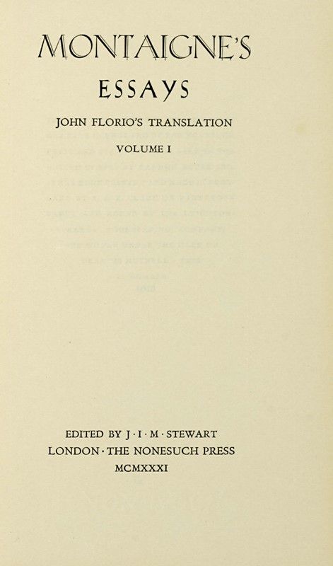 2 volumi in-8° (mm 208x123). Ottima copia, in barbe. Es. n. 1010 su una tiratura complessiva di 1375. Legatura originale realizzata dalla Leighton-Straker bookbinding company in pelle con un medaglione al centro di ciascun piatto realizzato in pelle verde e decorato a oro con motto "Que scay-jè". Titolo in oro su tassello al dorso, sguardie verdi.