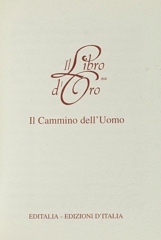 In-12° (mm 115x85). Con oltre 40 pagine in lamina d'oro 24 carati, perfettamente conservate. Legatura in pelle di vitello con titolo e impressione in oro al piatto; dorso a 4 nervi e sguardie in pelle di capra allumata. Entro espositore in plexiglass e legno, con chiavetta di apertura, fermacarte, guanti e certificato di garanzia conservati nel cassetto anteriore del cofanetto. Uno dei 10000 esemplari in numeri arabi, su una tiratura complessiva di 10020 copie. Targa di appartenenza in oro 18 carati al contropiatto anteriore. Ottimo stato di conservazione.
