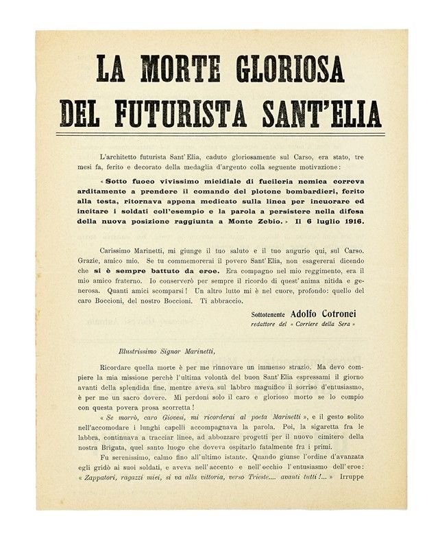 In-4° (mm 290x228). Carta [1]. Segno centrale di precedente piegatura e un minimo strappetto marginale, altrimenti ottima copia.
