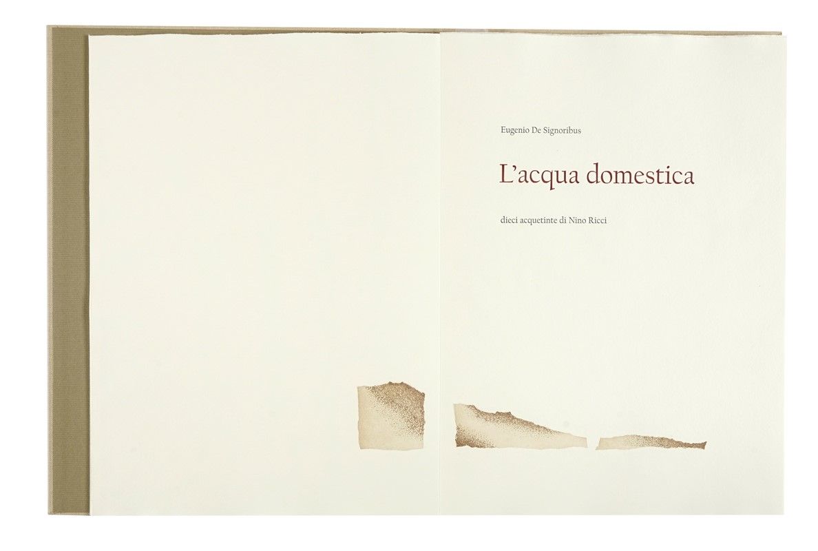 In-4° (mm 355x260). Carte [28] legate a leporello, con 10 splendide acquetinte di Nino Ricci. Cartella editoriale in cartone telato, con un collage al piatto anteriore firmato a matita dall'Artista, e titoli a secco al dorso; entro custodia coordinata. Uno dei 100 esemplari ad personam, su una tiratura complessiva di 130 copie.
