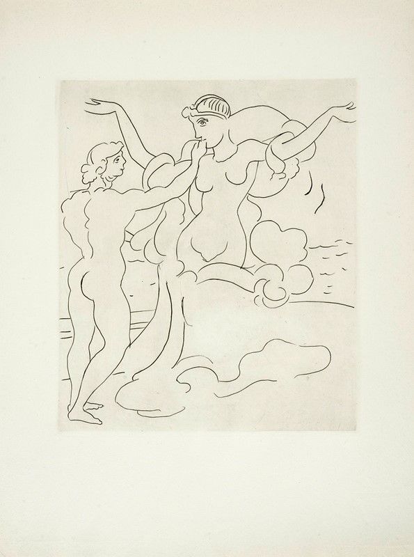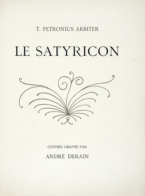 In-folio (mm 440x335). Pagine [8], 290, [3], 3 bianche con 33 incisioni a bulino a piena pagina nel testo e due suite, la Suite sur Auvergne des 36 cuivres gravés par André Derain (36 incisioni, di cui 3 non inserite nella pubblicazione definitiva) e la Suite sul Malacca des 43 bois dessinés par André Derain (43 incisioni su 22 fogli). Copia in ottimo stato conservativo, a fogli sciolti e in barbe. Esemplare n. 74 su una tiratura complessiva di 245 esemplari, uno dei 50 con una suite di bulini su velin e una in nero di fregi su Malacca. Camicia editoriale in carta, custodia in mezza pergamena con piatti rivestiti in carta. Impressioni in nero ai piatti, titolo in oro al dorso.