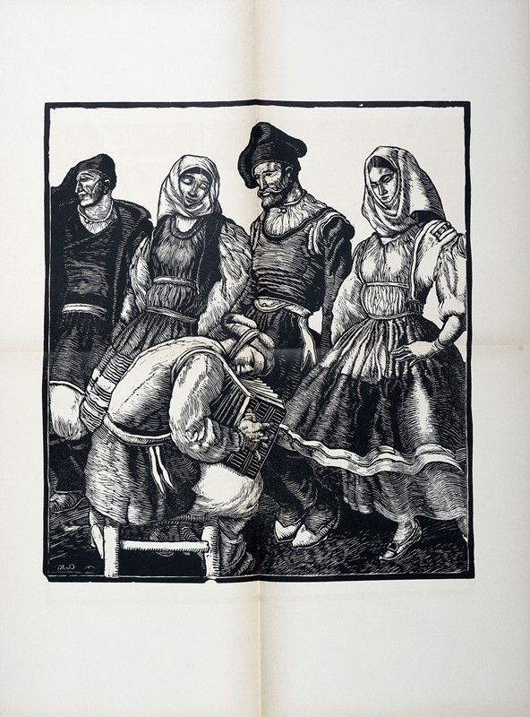 In-4° (mm 328x245). Pagine 69 con 12 tavole in xilografia di Mario Delitala, di cui una in zincografia a riproduzione della copertina e 11 numerate e titolate, spesso a doppia pagina o in quattro parti. Ottima copia, ancora intonsa. Brossura editoriale originale con titoli e impressioni a due colori. Alcuni strappetti al piatto anteriore, macchie a quello posteriore. SI AGGIUNGE: L'Eroica. Rassegna italiana di Ettore Cozzani. Anno XIX-XX. N. 149-150. Milano: L'Eroica, 1931.