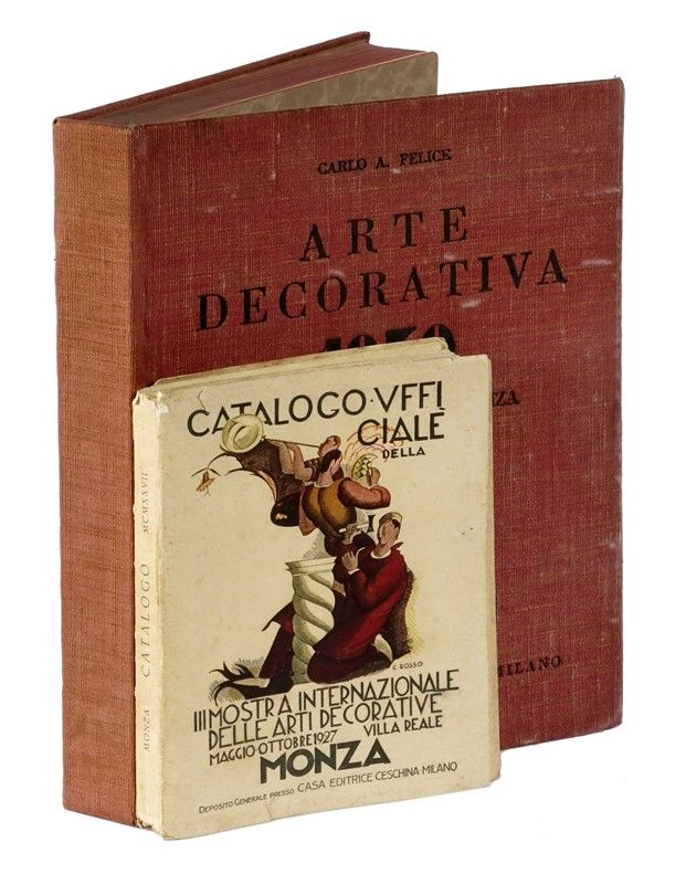 Compongono il lotto: 1) I Mostra Biennale delle Arti Decorative Internazionali. Maggio-ottobre 1923. S.d.e.; 2) Terza Mostra Internazionale delle Arti Decorative. Maggio- Ottobre 1927. Catalogo. Seconda edizione. Monza: Casa editrice Ceschina, 1927; 3) Marangoni Guido, La III Mostra Internazionale delle Arti Decorative nella villa Reale di Monza... Bergamo: Istituto d'arti grafiche, 1927; 4) Felice Carlo, Arte decorativa 1930 all'Esposizione di Monza. Milano: Ceschina, 1930 (volume + fascicolo sciolto).