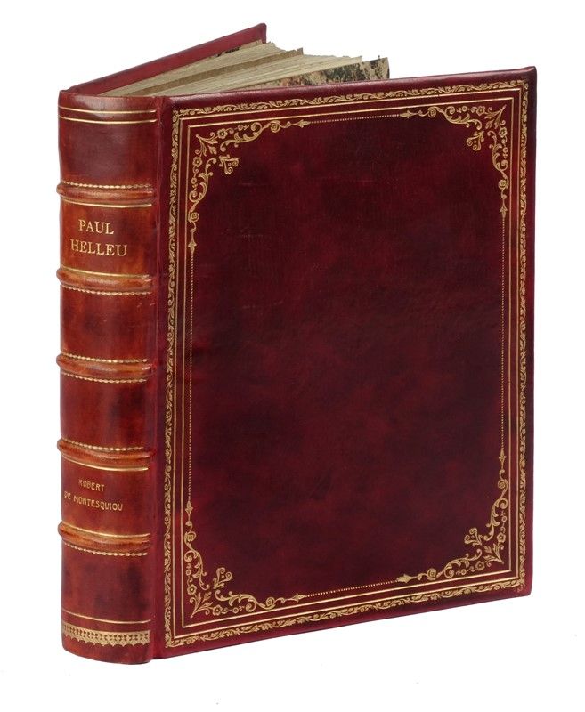 In-4° (mm 260x195). Pagine 114, [2] con 100 tavole a piena pagina fuori testo, ciascuna corredata di velina didascalica numerata da I a C, con 2 incisioni originali. Legatura moderna d'amatore in pieno marocchino rosso con cornici di filetti dorati ai piatti e titoli impressi in oro al dorso. Sguardie in carta decorata. Conservata all'interno la brossura editoriale dell'opera.