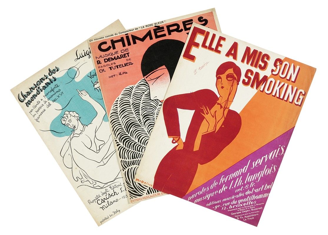 Testi musicali a stampa. Tecniche di stampa: litografia e due e tre pietre, zincografia a tre lastre, cromolitografia su base zincografica. 1 spartito non completo. Spartiti pubblicati in Italia, Francia, Austria, Belgio e Germania. Alcuni segni d’uso. Dimensioni: 330x240 mm ca. SI AGGIUNGONO: 8 spartiti di canzoni popolari napoletane. Datati 1885-1911.