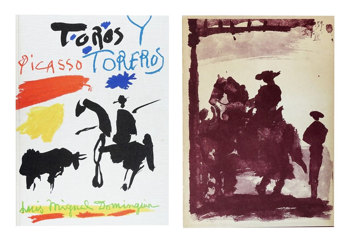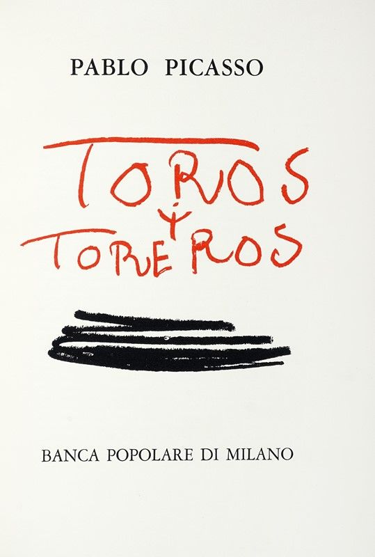 In-folio (mm 375x270). Pagine 31, [1] con numerose tavole a piena pagina a colori con le riproduzioni di opere di Pablo Picasso. Tela editoriale originale illustrata a colori, con titoli al piatto anteriore e sguardie illustrate; cofanetto editoriale in cartone rivestito in tela e illustrato. Difetti alle cerniere del cofanetto e bruniture da esposizione al dorso.