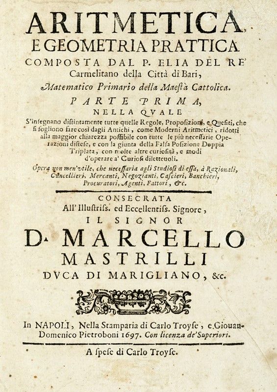 2 parti in 1 volume in-4° (mm 220x160). Pagine [8], 379 [i.e. 343], [1], 344. Con 36 pagine di tavole ripiegate, rimontate in fine. Finalini e illustrazioni in legno. Fioriture sparse, forti bruniture ad alcune carte, abrasioni, che coinvolgono il testo, al margine inferiore delle carte a3-a4 e un foro di tarlo restaurato alle pagine 265-274 della seconda parte. Legatura in pergamena, con titoli manoscritti al dorso, parzialmente cancellati; sguardie rinnovate e tagli spruzzati di rosso.