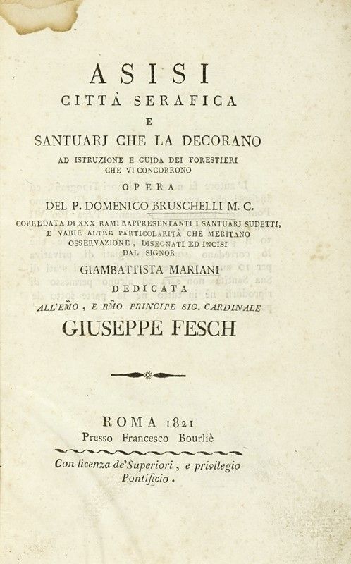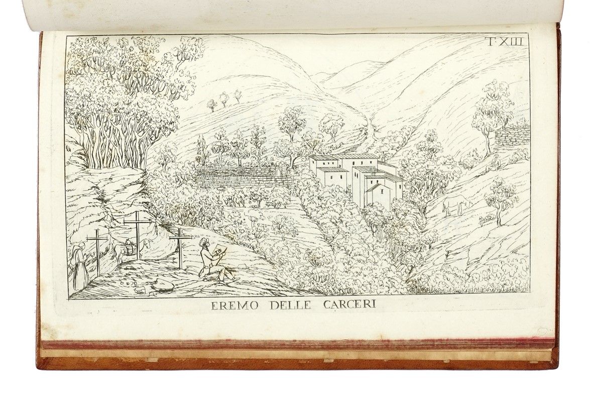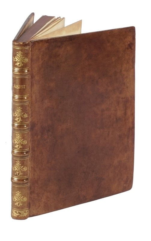 In-8° (mm 205x135). Pagine VIII, 112 con 30 tavole a piena pagina numerate I-XXX. Sporadiche fioriture, altri minimi difetti, per il resto buona copia. Legatura successiva in piena pelle con titoli e decorazioni impressi in oro al dorso a cinque nervetti. Tagli rossi. Minime mancanze lungo le unghiature. sguardie rinnovate. Ex-libris di precedente proprietario al contropiatto anteriore.