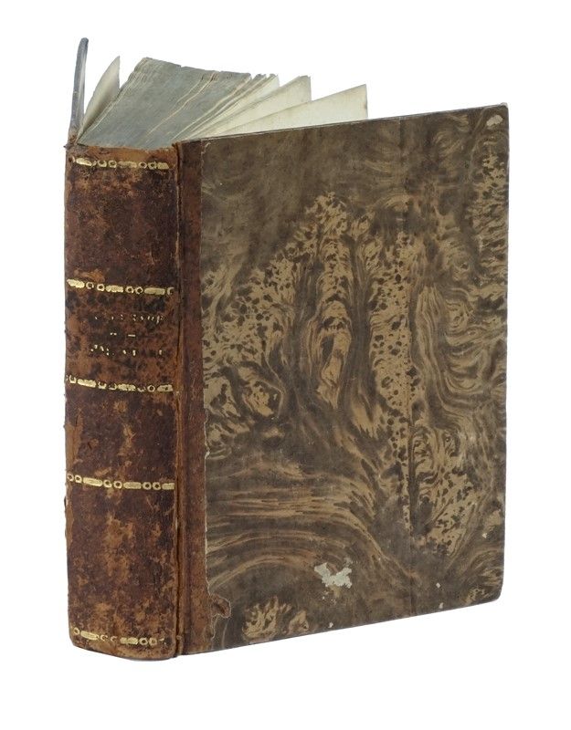 In-8° (mm 152x102). Carte [8], 242 [i.e. 232]. Ritratto xilografico in ovale dell’Autore sul frontespizio, mappa xilografica della Spagna a doppia pagina e oltre 50 legni a piena pagina nel testo. Copia gorata nel margine superiore delle carte, con un piccolo lavoro di tarlo nel margine interno degli ultimi fascicoli. Legatura ottocentesca in mezza pelle con piatti in carta marmorizzata e titolo in oro al dorso.
