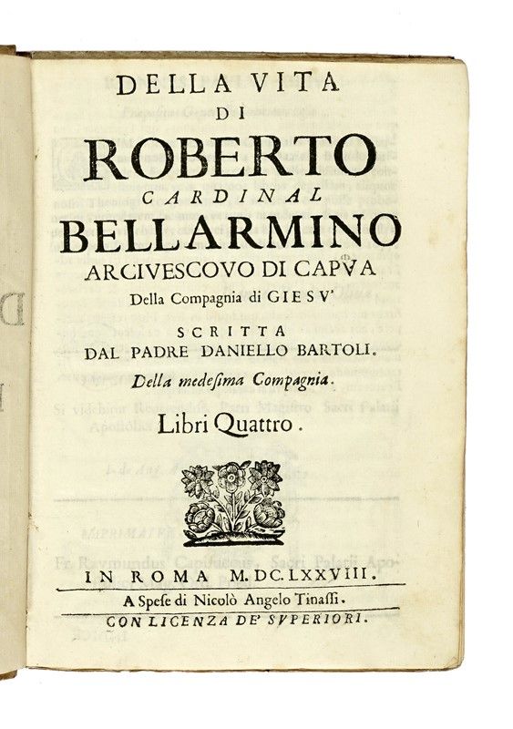 In-4° (mm 200x145). Marca al frontespizio, iniziali istoriate e finalini incisi in legno. Con un bel ritratto calcografico del Cardinale a piena pagina fuori testo. Esemplare rifilato, con il ritratto fortemente brunito, ma complessivamente in ottime condizioni. Legatura coeva in piena pergamena, con titoli in oro su tassello al dorso a 4 nervetti. Tracce di polvere e altri minimi difetti.