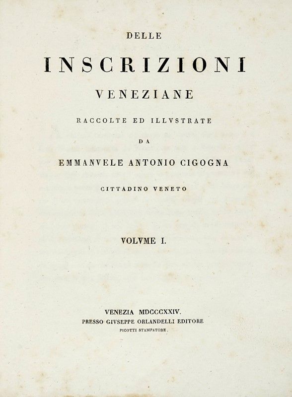 6 volumi in 25 (di 26) fascicoli in-4° (mm 310x230). Assente il fascicolo 22 (parte del volume 6), presenti i fascicoli 25 e 26, contenenti rispettivamente Le correzioni e giunte ai fascicoli precedenti e le Correzioni e giunte finali a tutti li sei volumi. Fascicoli in barbe. Brossura editoriale originale in carta azzurrina con titoli impressi entro cornice al piatto anteriore. Mancanze e spellature lungo i dorsi e le cuffie.