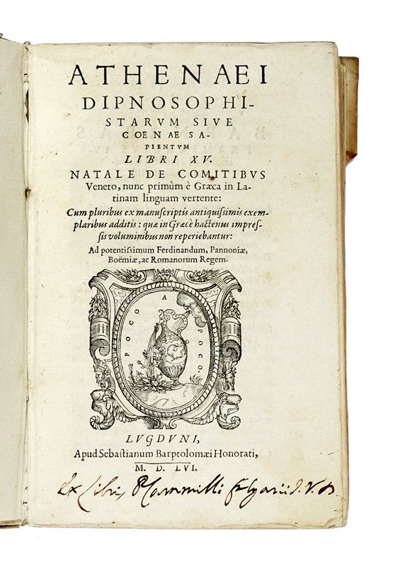 In-8° (mm 169x110). Pagine [24], 898, [28], 2 bianche. Marca xilografica al frontespizio, capilettera in legno nel testo. Bruniture alle carte, fioriture sporadiche e alcune macchioline. Fascicoli allentati. Legatura in piena pergamena molle con titoli manoscritti al dorso. Difetti al dorso, uno strappo al piatto posteriore. Ex-libris manoscritto al frontespizio.