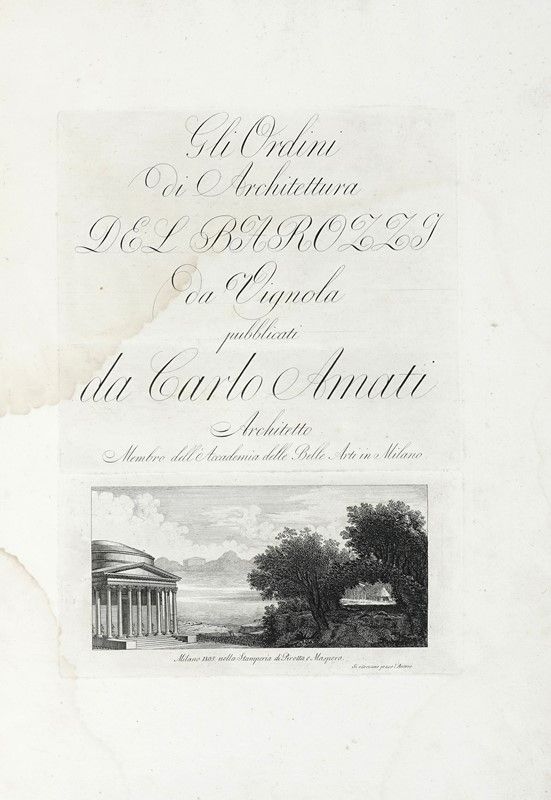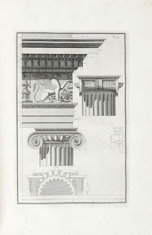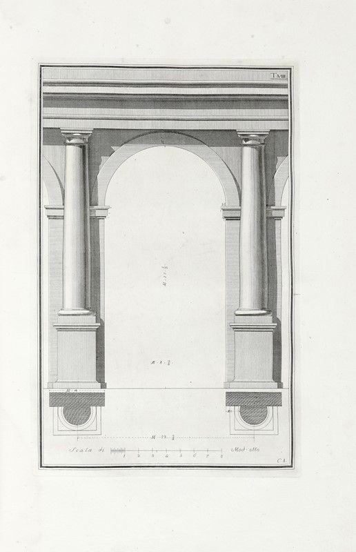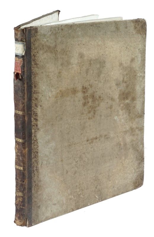 In folio (mm 490x355). Pagine [2], 56, [1], 1 bianca + 38 tavole incise in rame a piena pagina numerate I-XXXVIII. Frontespizio calcografico. Copia gorata, con tracce di muffa nella seconda parte del volume. Legatura coeva in mezza pelle con punte e piatti in carta. Titolo in oro su tassello al dorso. Persa parte del tassello, mancanze e segni d'uso lungo cuffie, cerniere e unghiature.
