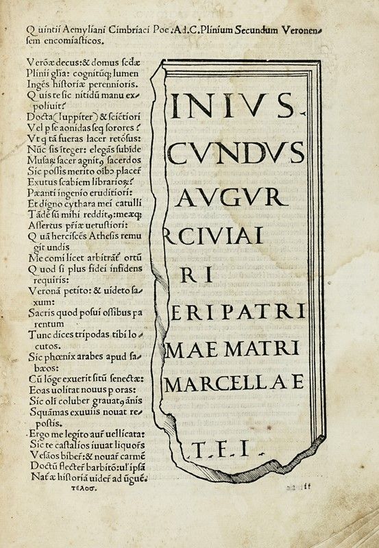 In folio (mm 280x195). Carte [14] di [16], 280 [i.e. 279], [10]. Privo delle carte 2a1 (frontespizio), 2a2 e dell'ultima carta bianca. Saltata nella numerazione la carta 209. Occasionali fioriture marginali, ultima carta con macchie e difetti, ma buona copia. Legatura coeva in piena pergamena con titolo manoscritto al dorso. Alcune macchioline ai piatti, legatura parzialmente staccata. Postille di mano antica nel testo, alcune parzialmente lavate.