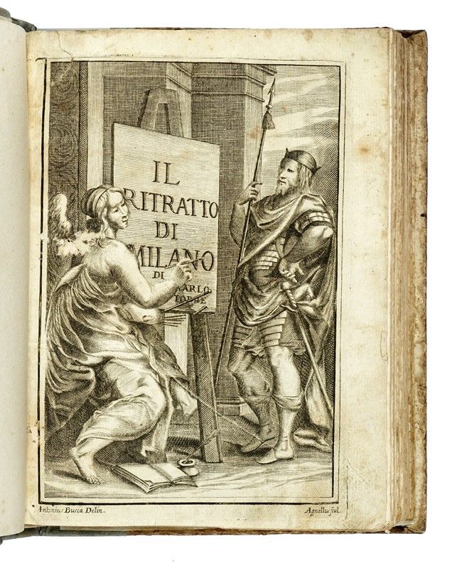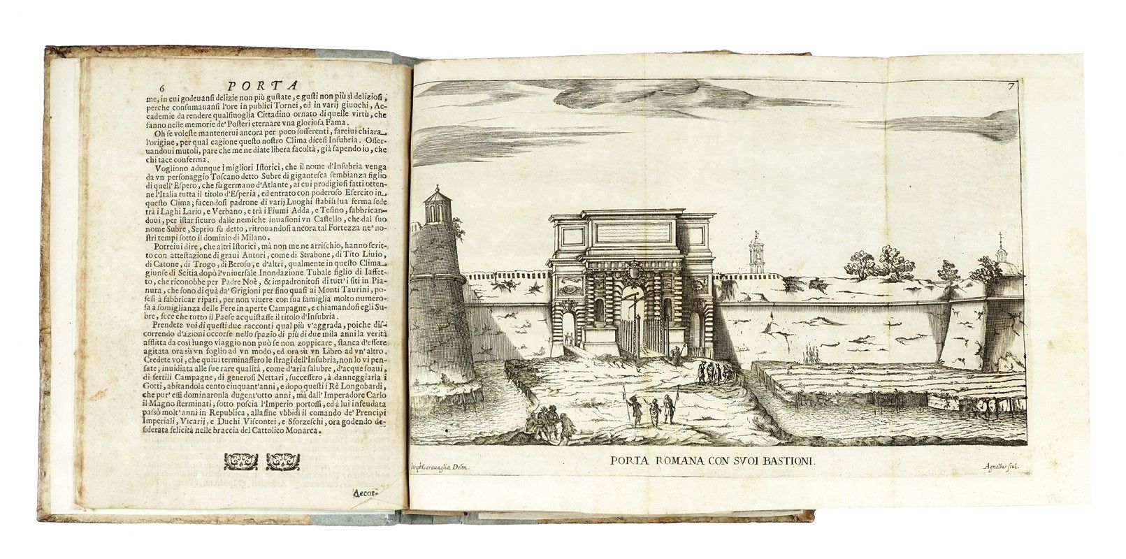 In-4° (mm 215x161). [14], 417 [i.e. 419], [13]. Con, fuori testo, 1 antiporta calcografica e 7 belle tavole in rame più volte ripiegate di Antonio Busca, Andrea Biffi, Giuseppe Garavaglia, Federico Agnelli, Benedetto Quarantino e Filippo Biffi. Marca in legno al frontespizio, testatine e capilettera xilografici. Esemplare rifilato e ampiamente fiorito, con una lieve mancanza e uno strappetto restaurato con nastro adesivo all'antiporta e altre minime mende. Legatura in mezzo cartonato con titoli manoscritti al dorso; sguardie rinnovate. Macchie ai piatti.