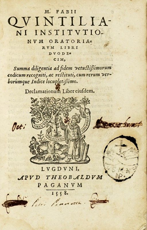 2 parti in 1 volume in-8° (170x110). Mancanza di carta dovuta a corrosione dell'inchiostro ferrogallico nelle prime tre carte di testo, con perdita di alcune lettere, volume uniformemente brunito. Legatura coeva in piena pergamena rigida. Alcune mancanze lungo il dorso. Antiche note di possesso e un timbro di precedente collezione sul frontespizio.
